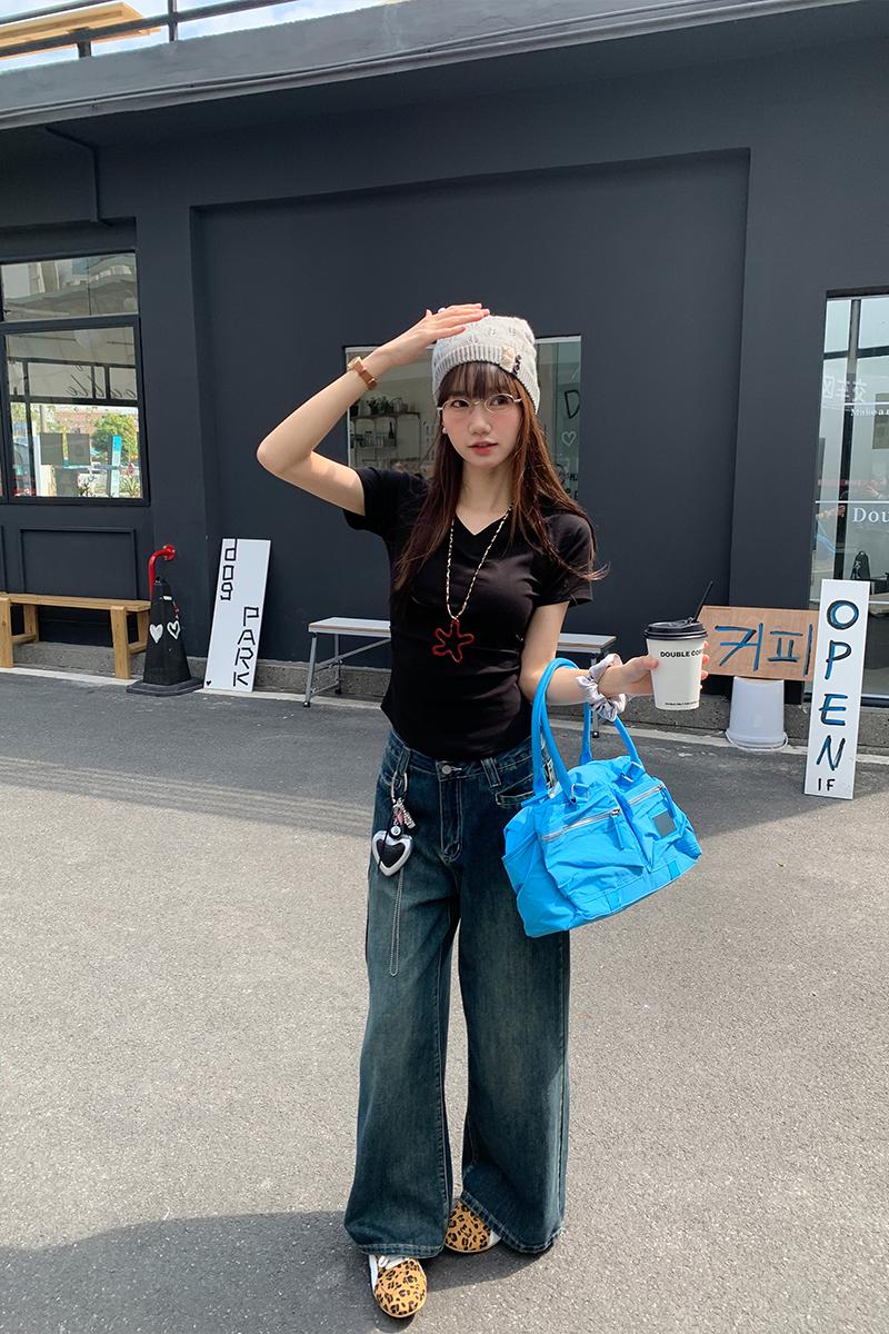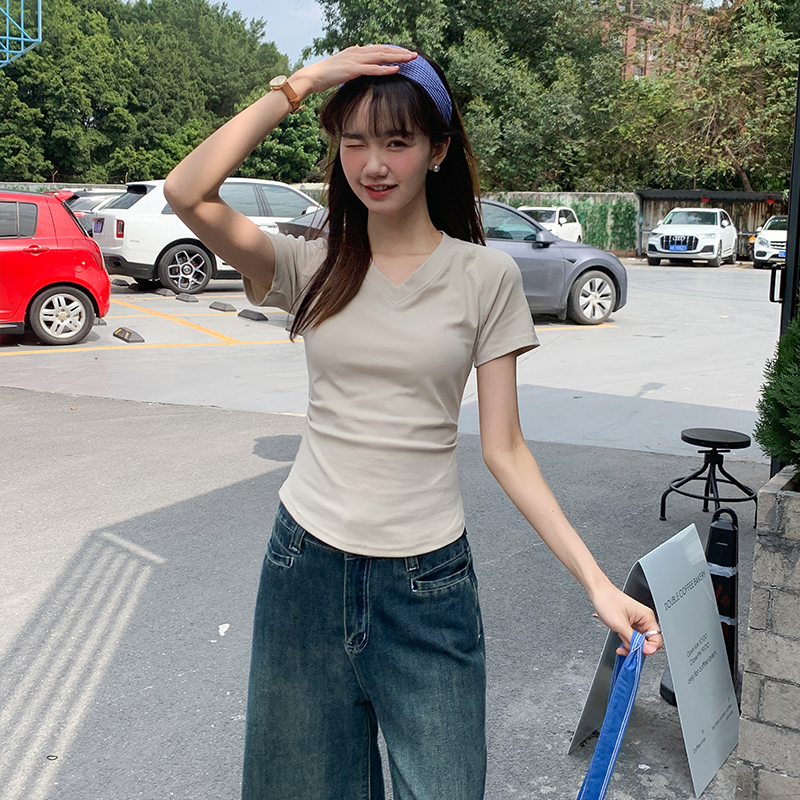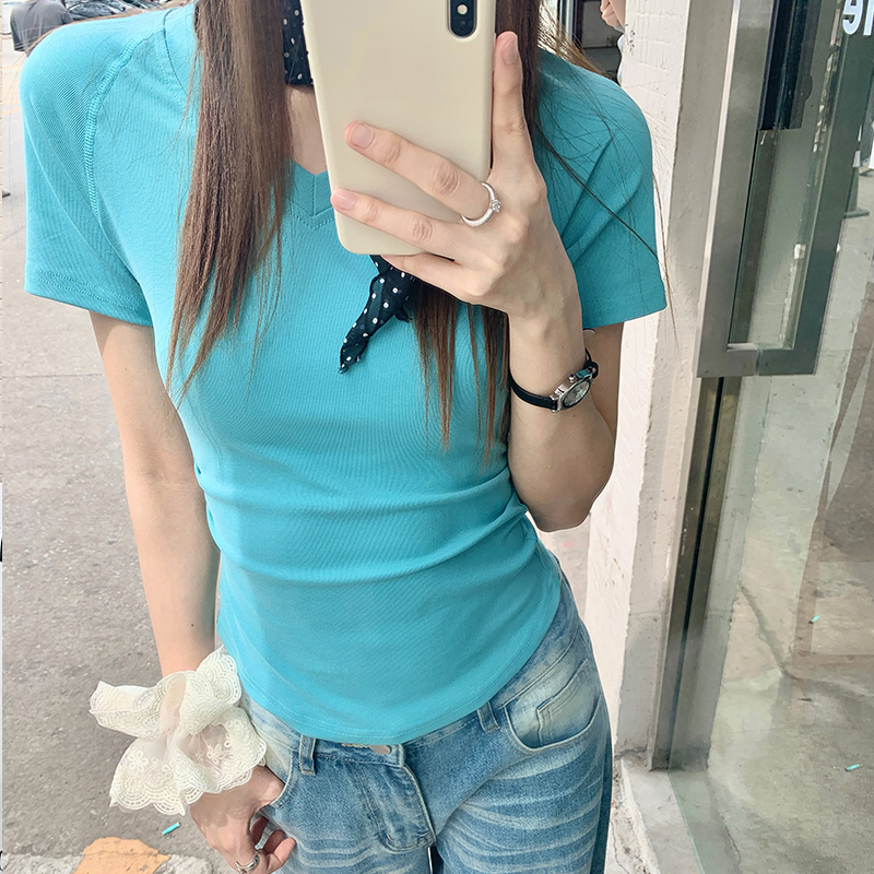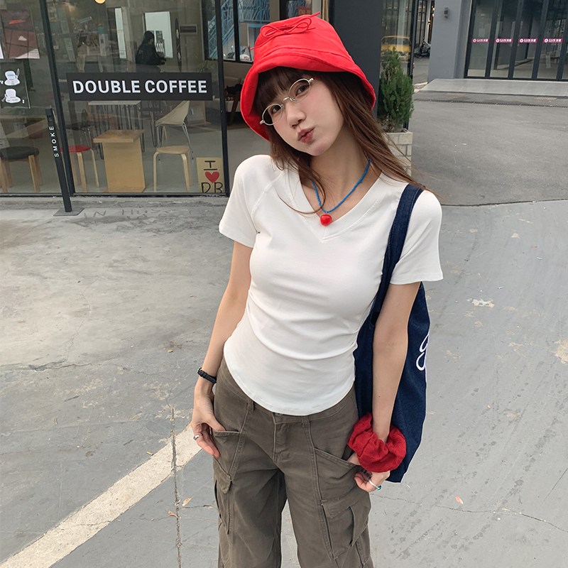여성을위한 실제 가격#v 넥 티셔츠 짧은 소매 2025 새로운 디자인 주름 허리 껴안기 슬림 한 여성 여름