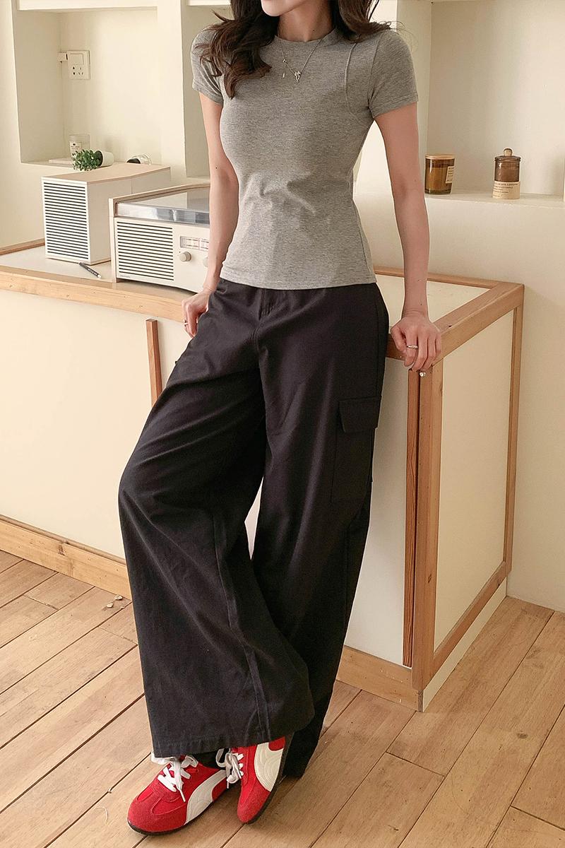 실제 샷 및 실제 가격 #라인 압력 전면 어깨 어깨 단락 티셔츠 여성용 2025 새로운 디자인 다용다 꽉 끼는 슬림 둥근 목 상단