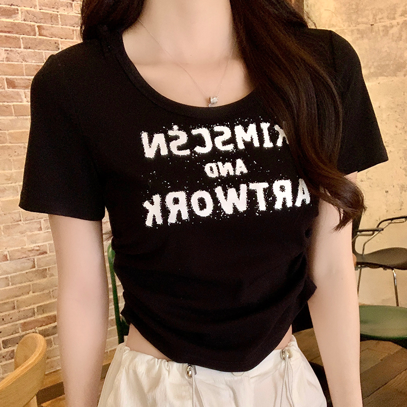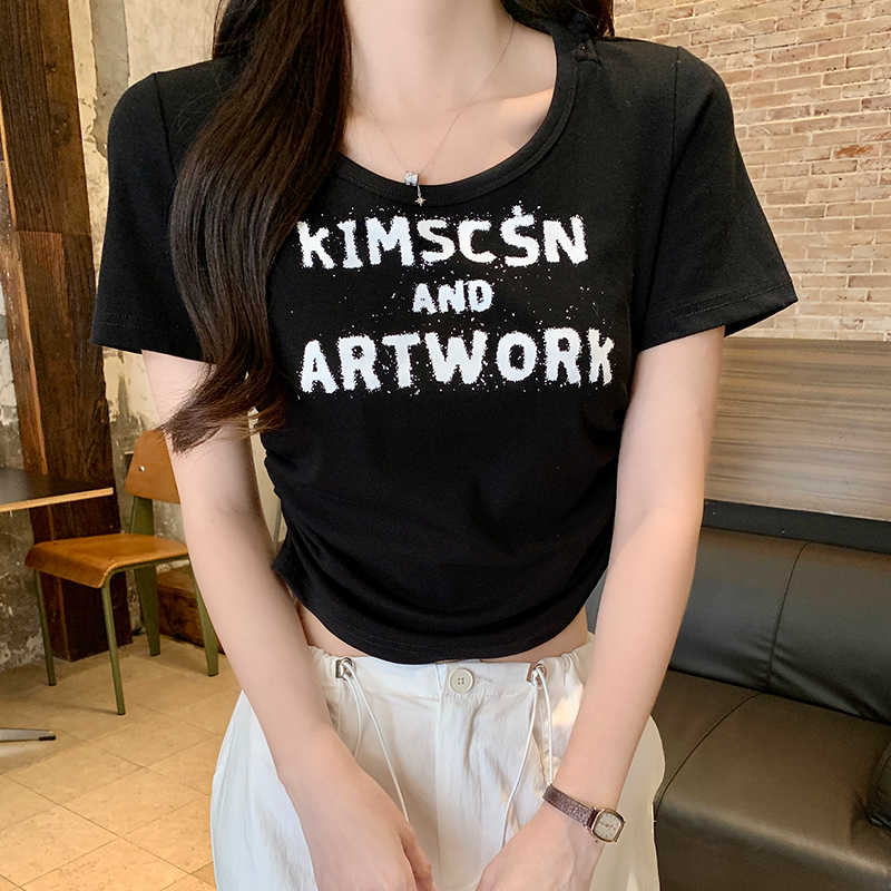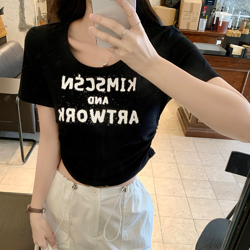 실제 샷과 실제 가격#전면 어깨 어깨 단축 테이어 여성 여름 2025 새로운 디자인 주름 꽉 슬림 한 짧은 상단