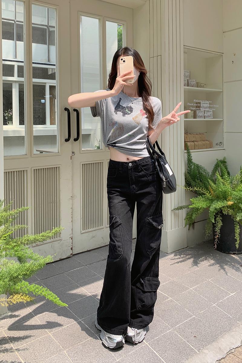 실제 가격#만화 여성 여름을위한 프론트 어깨 단락 티셔츠 2025 새로운 미국 반팔 티셔츠 짧은 탑
