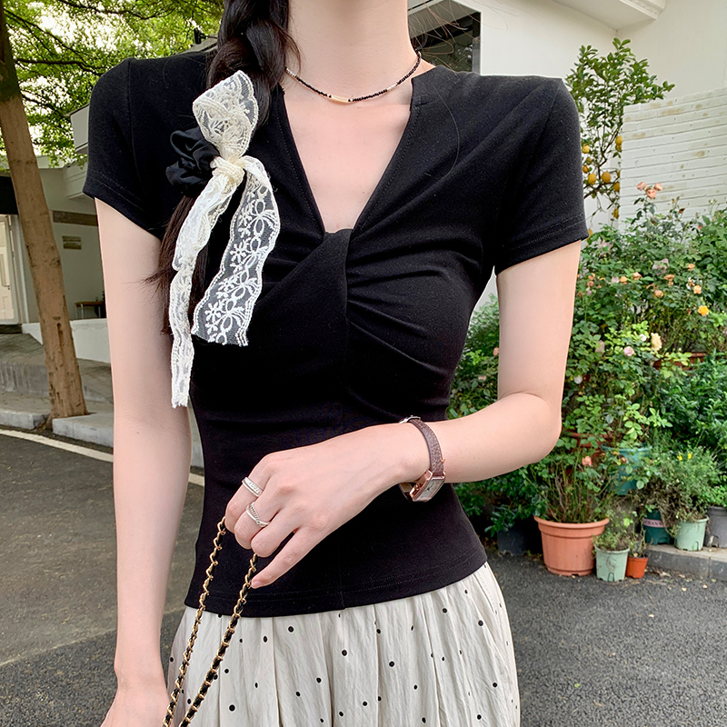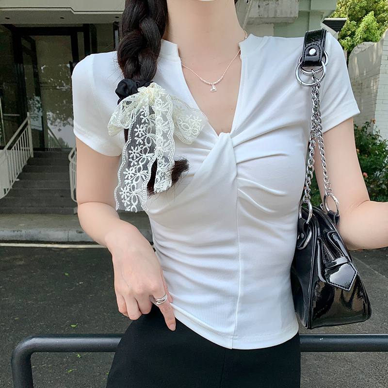 실제 촬영, 실제 가격 인 Summer Summer 2025 New Design Niche Sexy Short Off Shoulder Top을위한 Real-Sprice One Shoulder Short-Sleeved 티셔츠