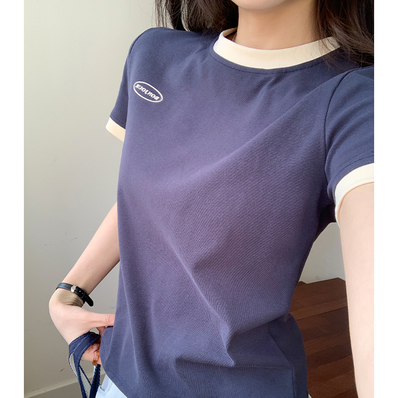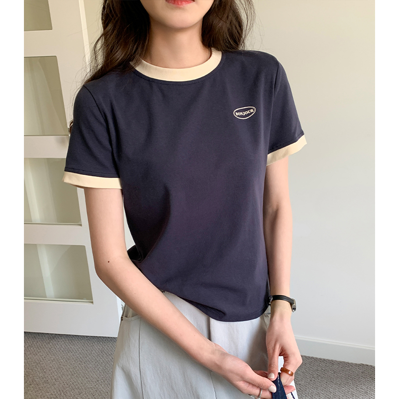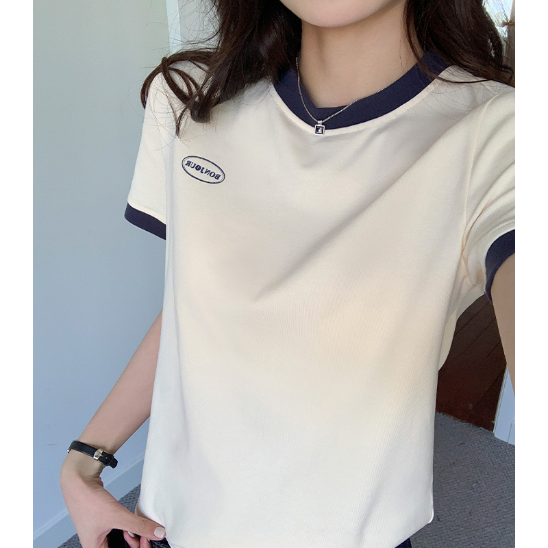 여름에 여성을위한 순수한면 앞쪽 어깨 짧은 슬립 티셔츠 2025 새로운 둥근 목 느슨한 편지 인쇄 상단 셔츠