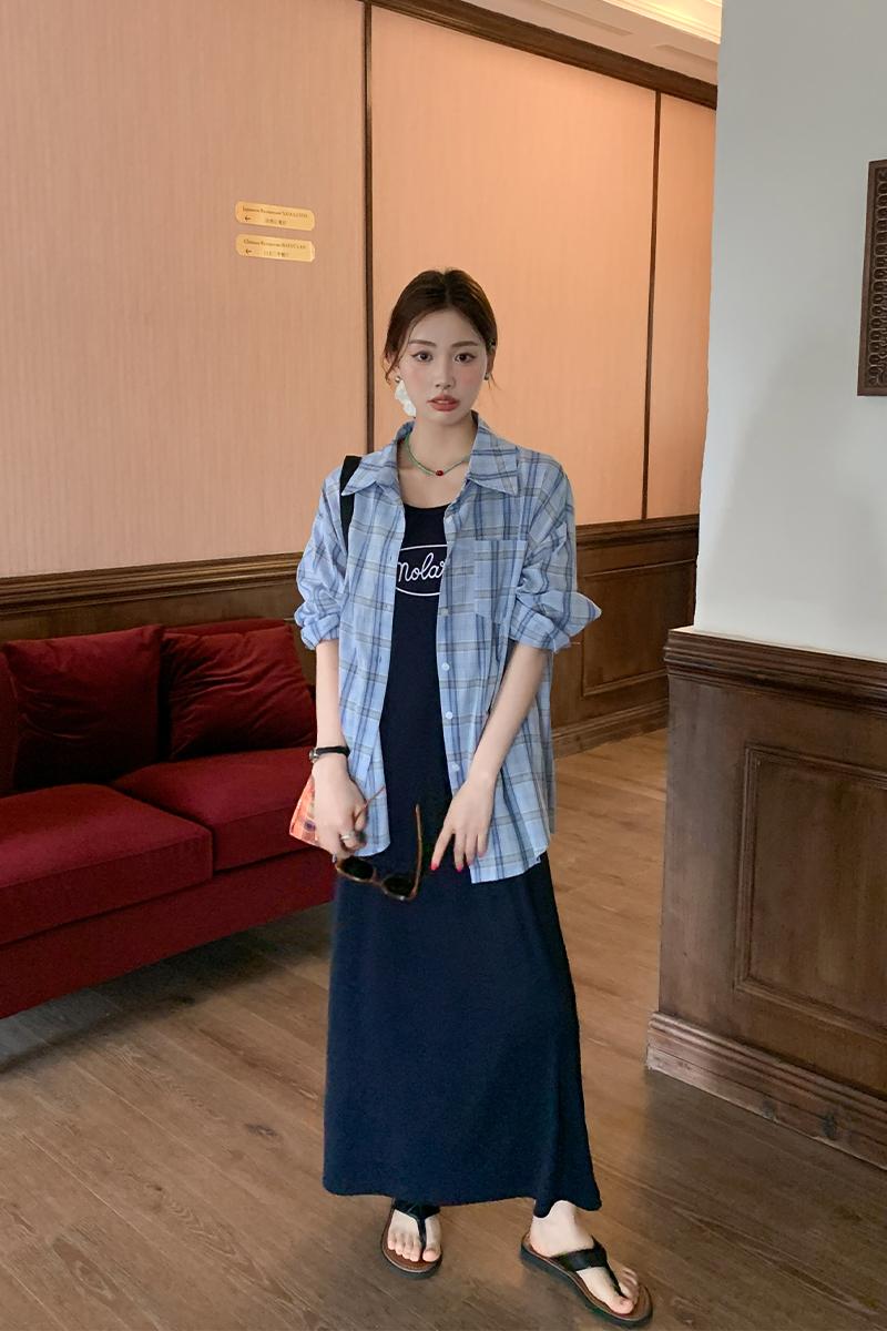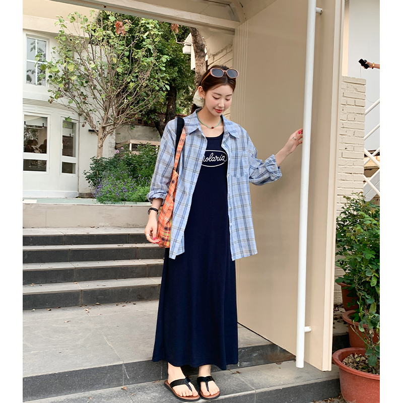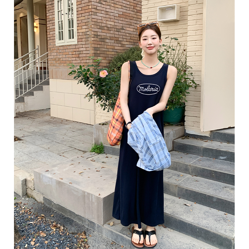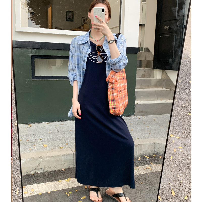 여성을위한 서스펜더 조끼 드레스 2025 New Spring Fat MM 슬림 치마 2 피스 긴 치마