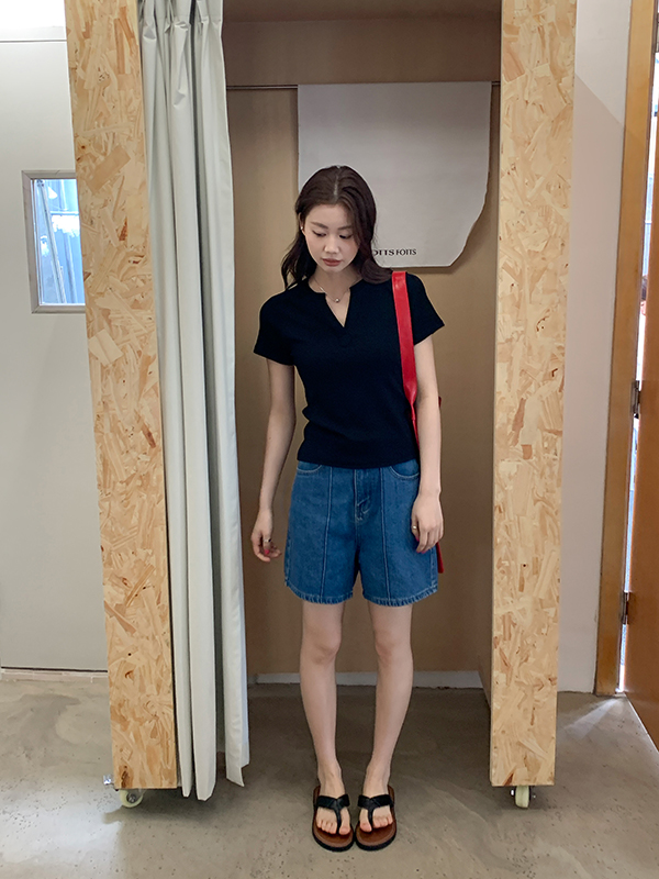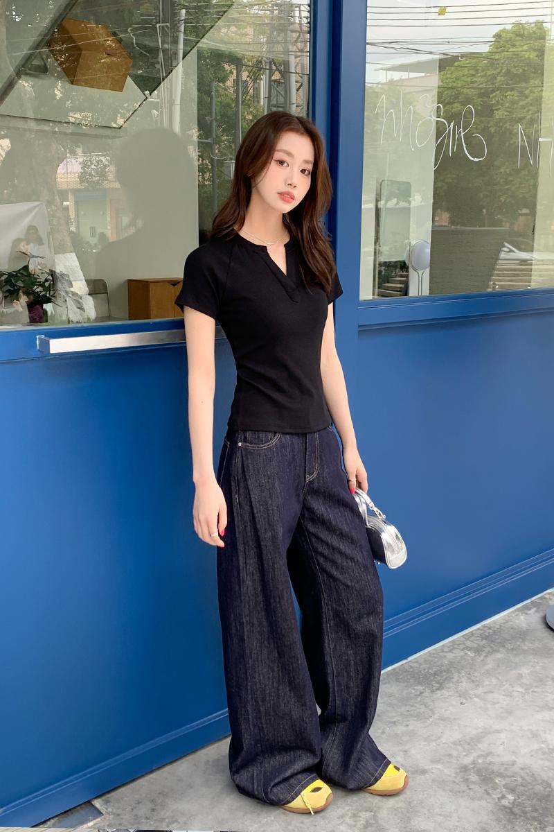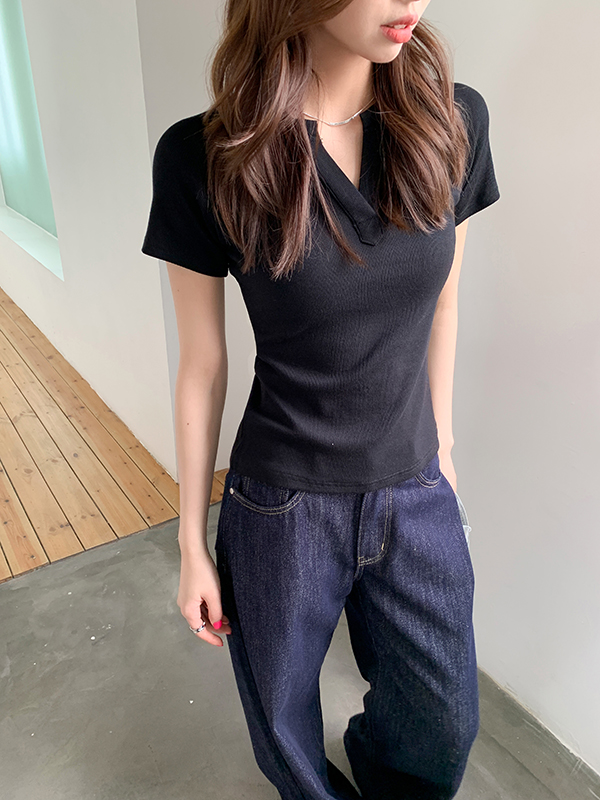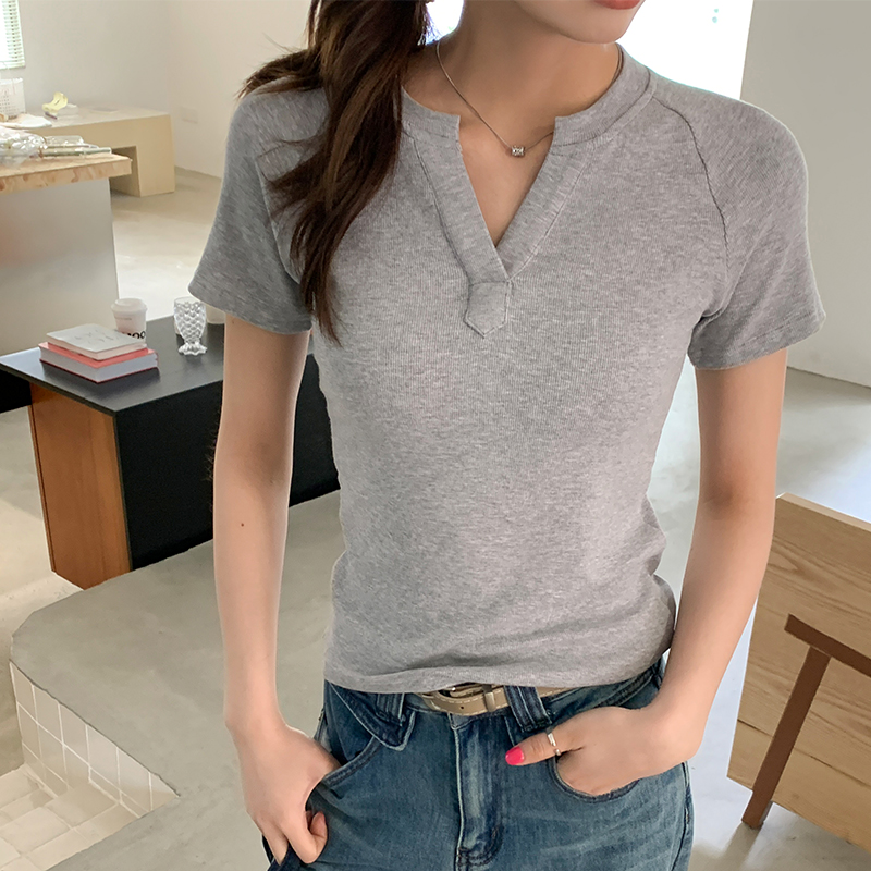 실제 가격 v- 넥 짧은 슬림 티셔츠 여름에 여름, 다재다능하고 세련된 연령 감소 슬림 한 Short Base Top
