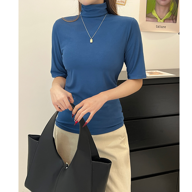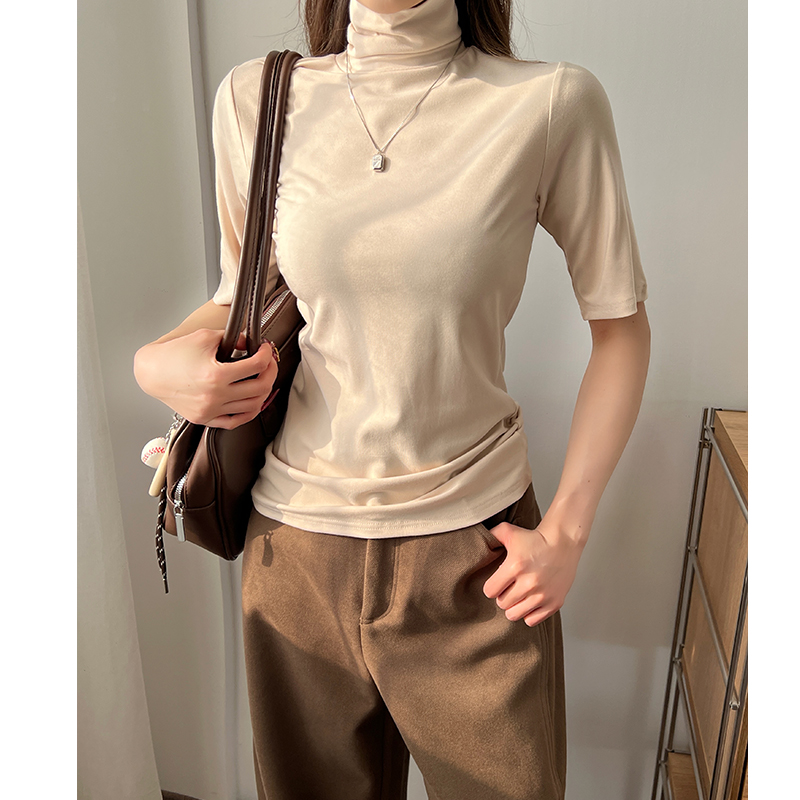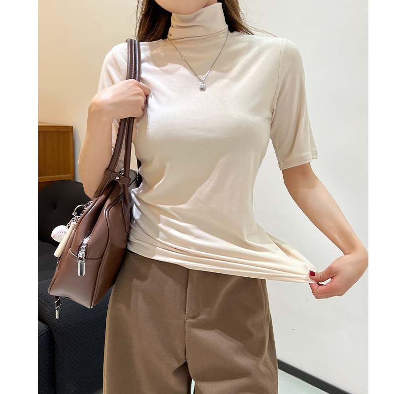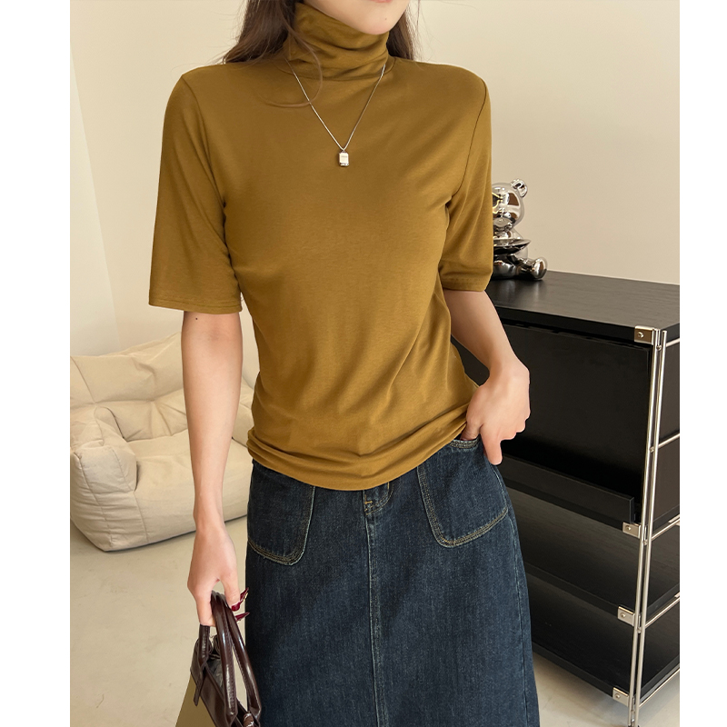 여성을위한 Duoduo Collar Front Short Short Sleeve 티셔츠 2025 봄과 여름 유럽 제품 슬림베이스 셔츠 여성 5 점 소매 상단