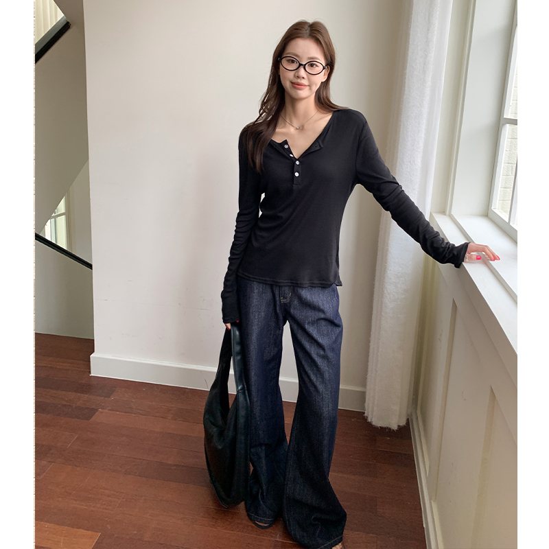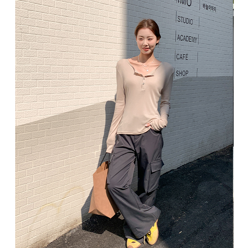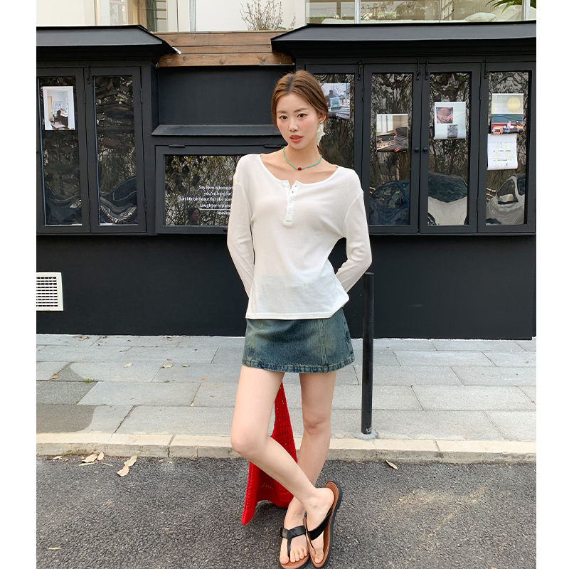 여성용 얇은 봄 2025 이른 봄 새로운 슈퍼 뜨거운 유럽 버튼 느슨한 여성용 긴팔 티셔츠