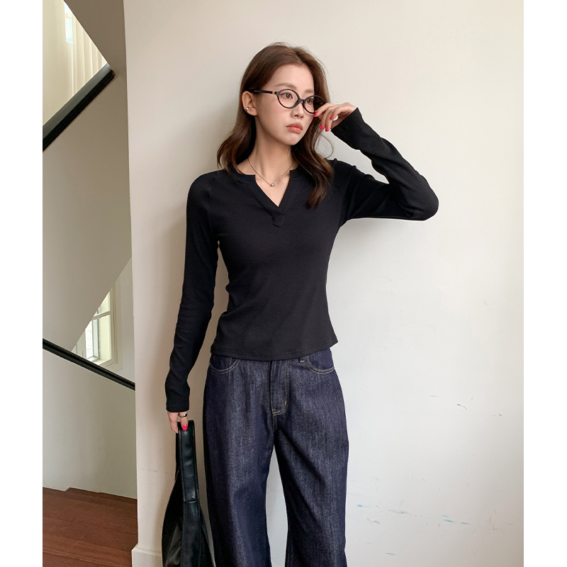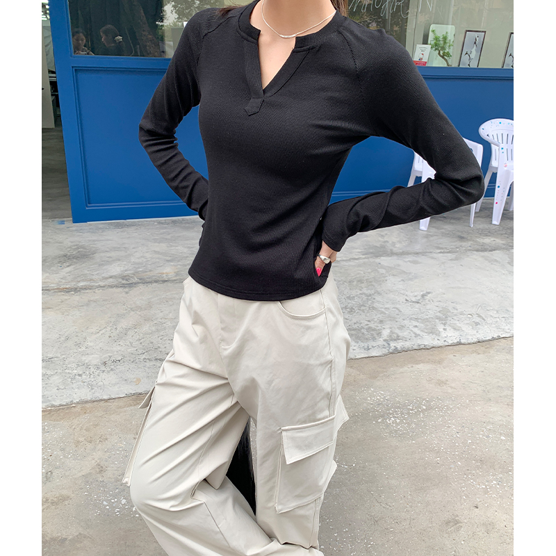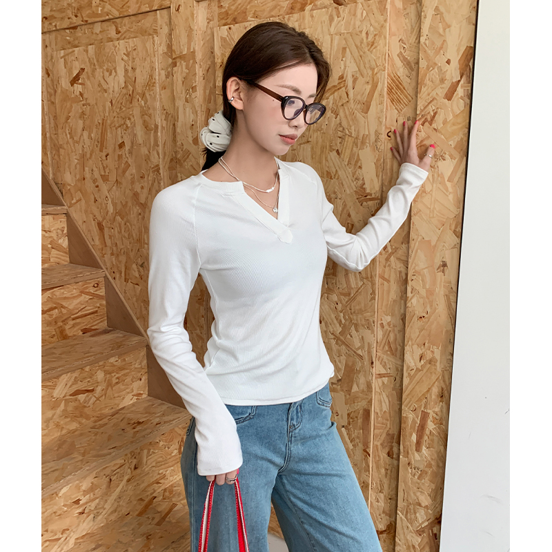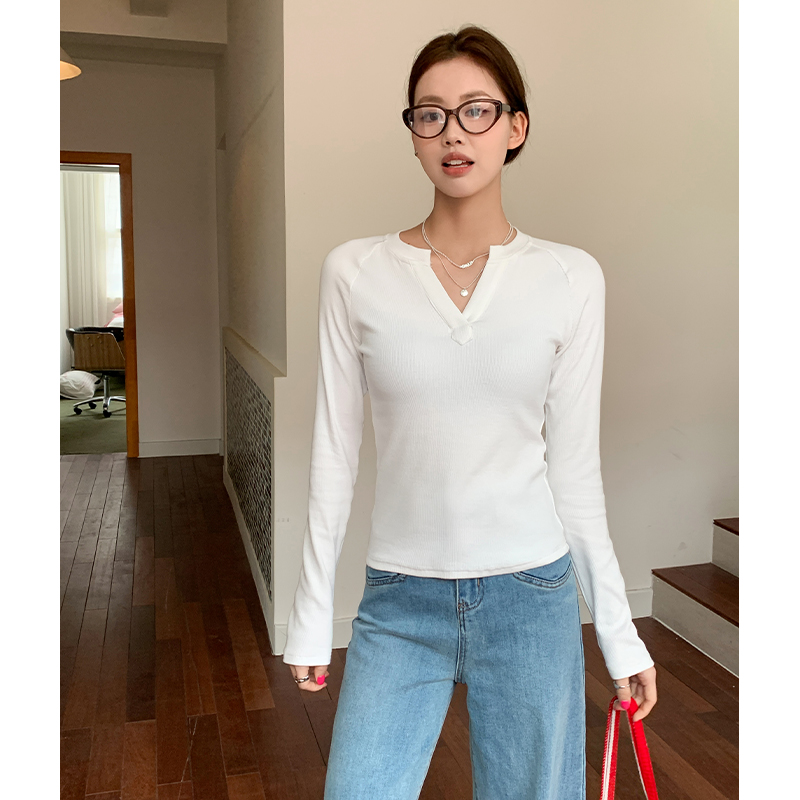 실제 가격 V- 넥 티셔츠 봄 봄 2025 년 봄 새 슬림 짧은 순수면 어깨 상단 속옷베이스 셔츠
