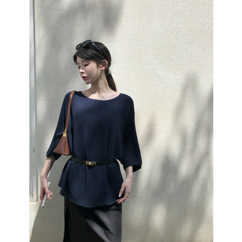 여름 프랑스어 둥근 목 얼음 실크 니트웨어
