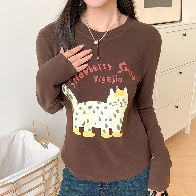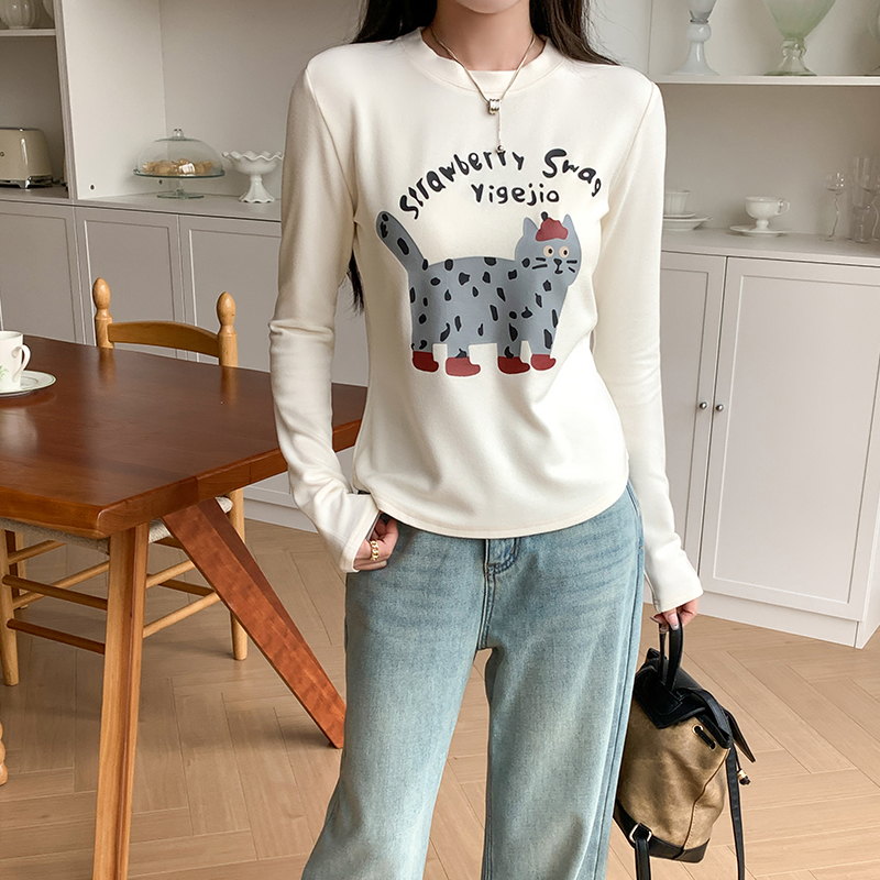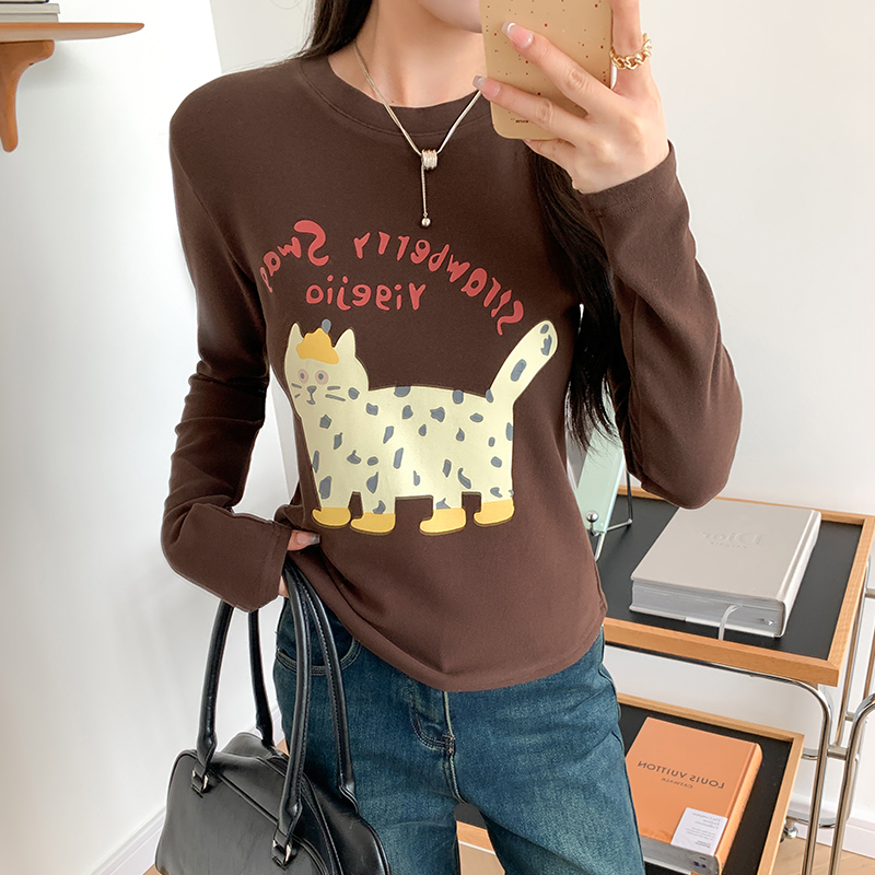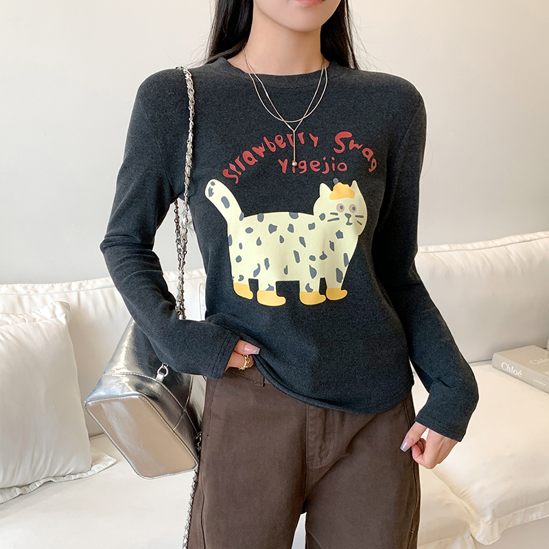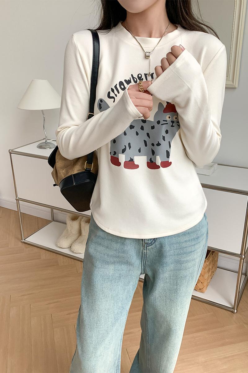 Real Price Real Shot #CAT 인쇄 강인 긴팔 티셔츠 가을과 겨울 New New Fun Cute Velvet Base Shirt Top