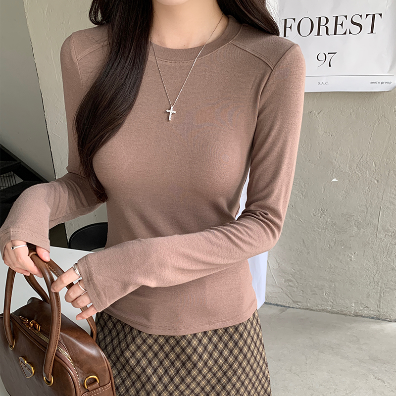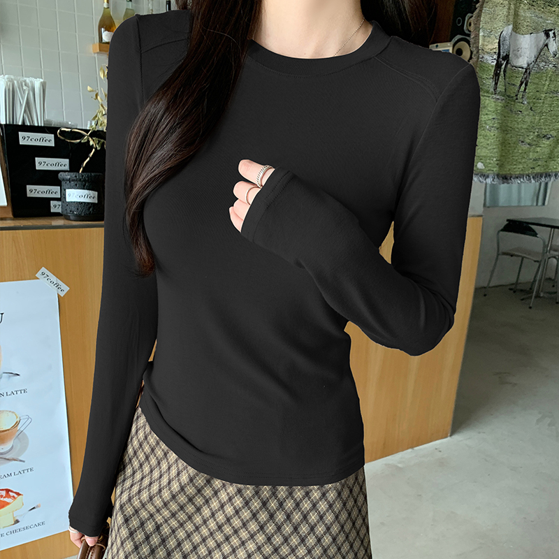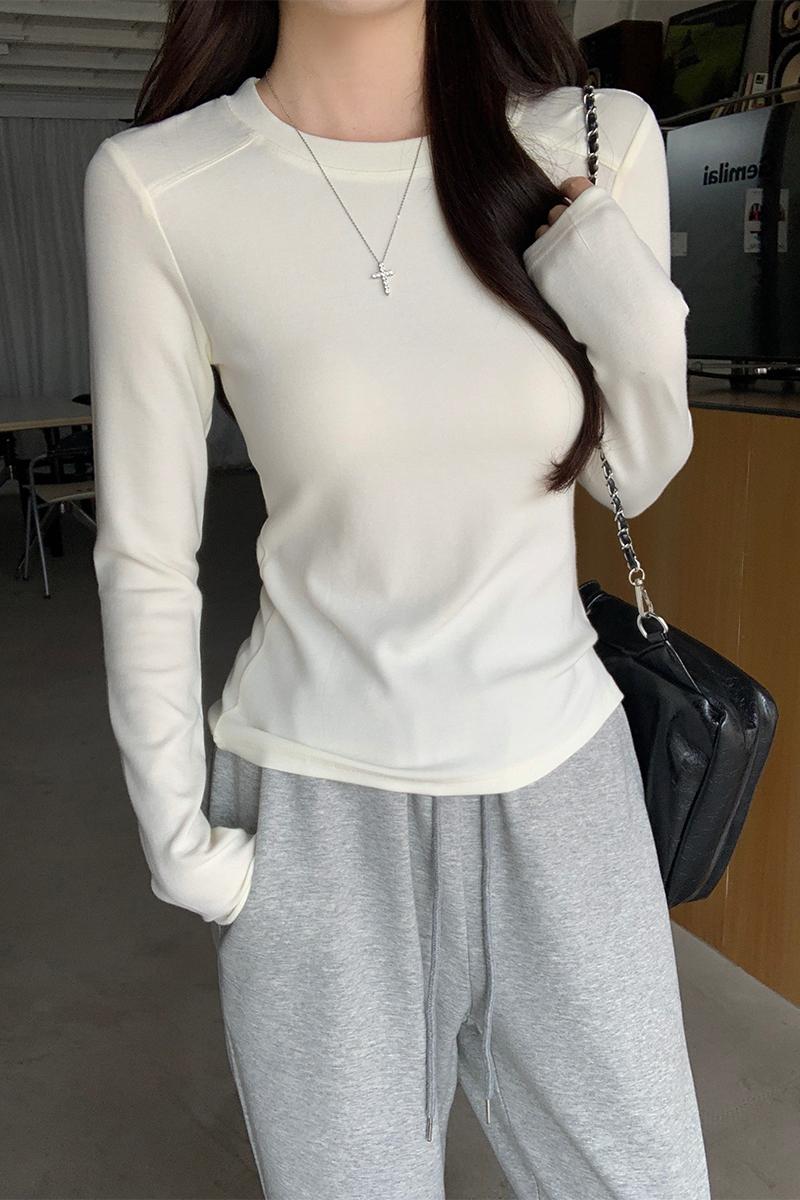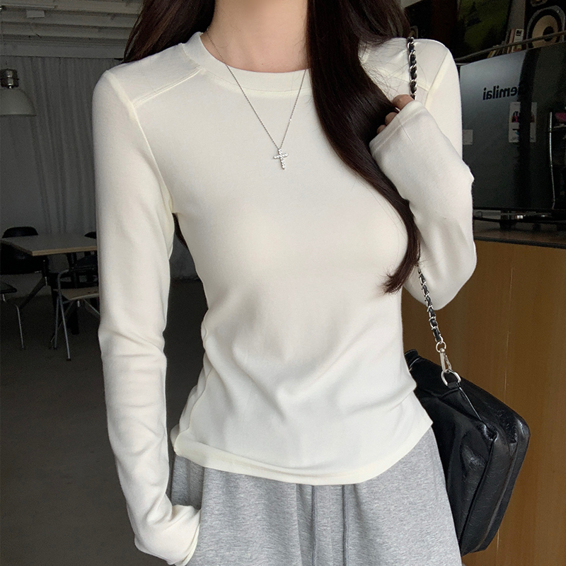 흰색 원형 목이 긴팔 티셔츠 여성용 꽉 디자인 바닥 셔츠 속옷 캐주얼 탑