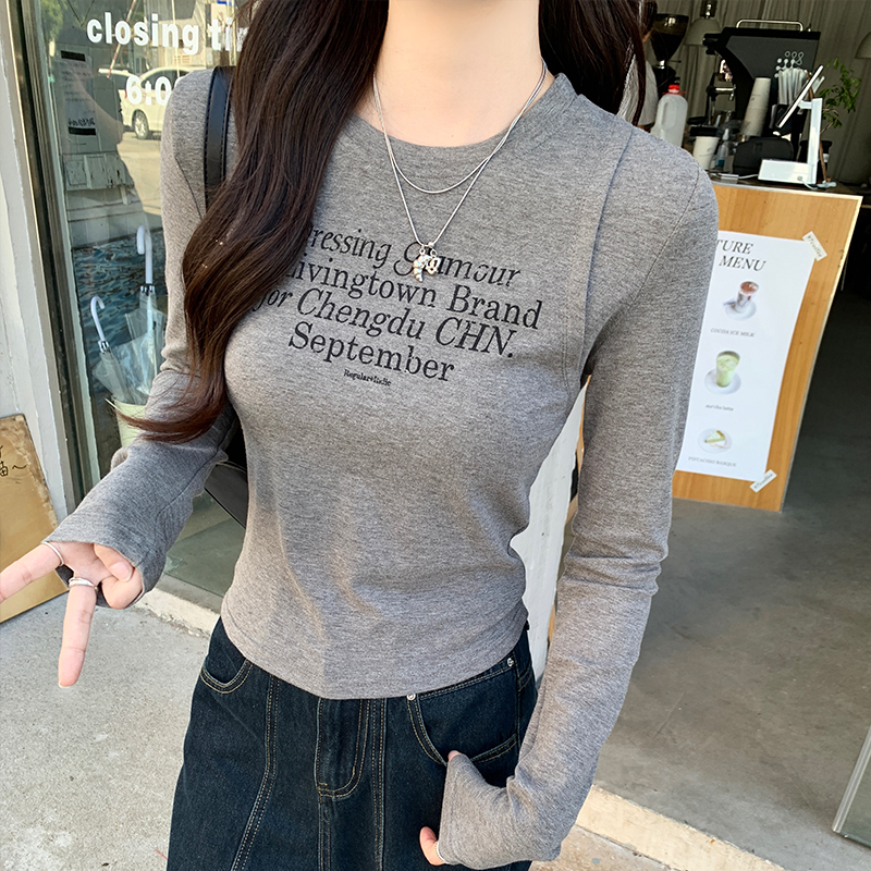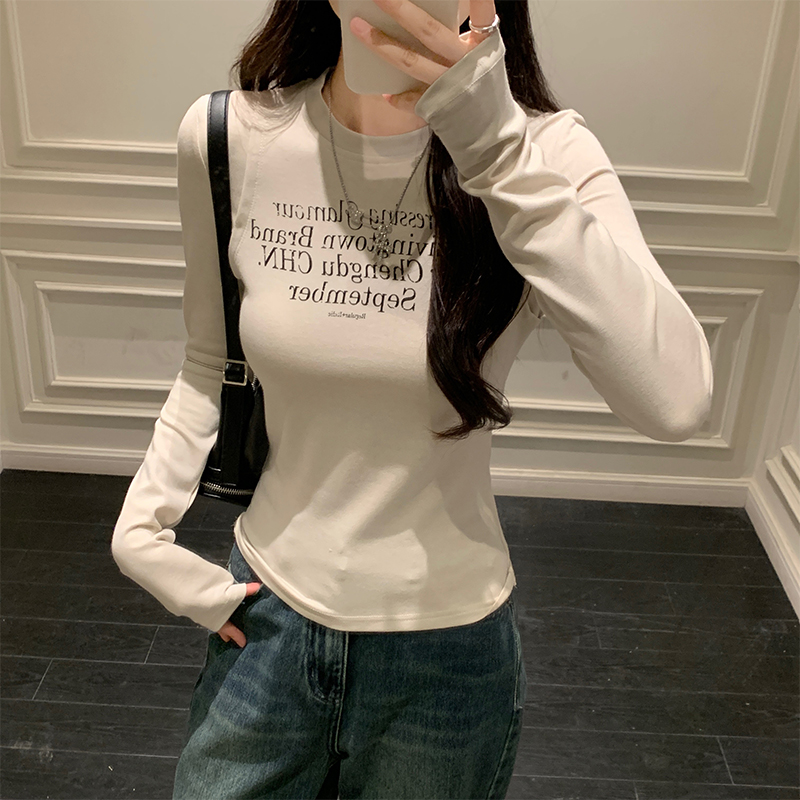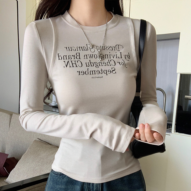 Real Price Real Shot #fake 봄과 가을 아메리칸 짧은 편지에서 여성을위한 여성을위한 2 피스 긴팔 티셔츠 여성을위한 상단베이스 셔츠