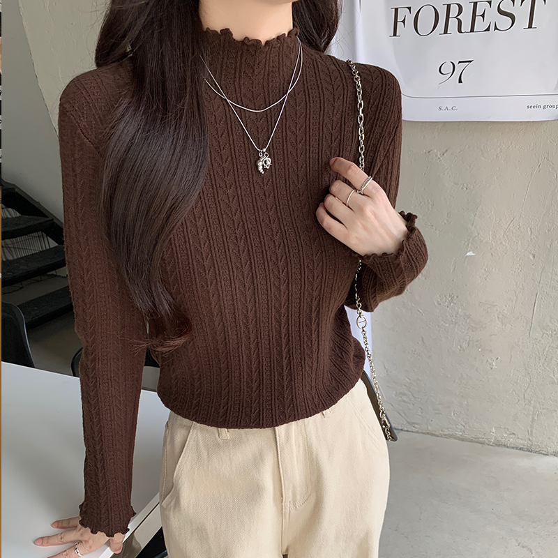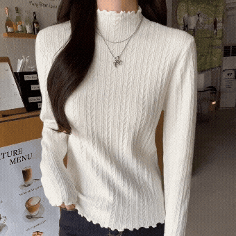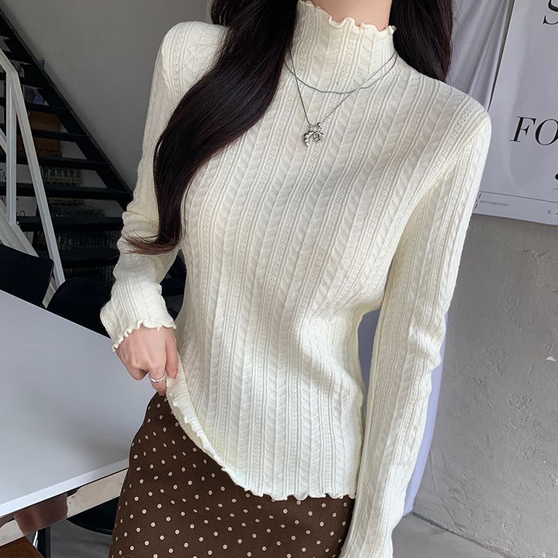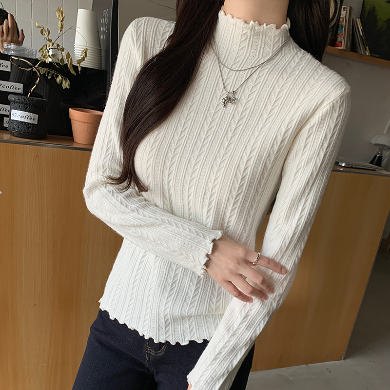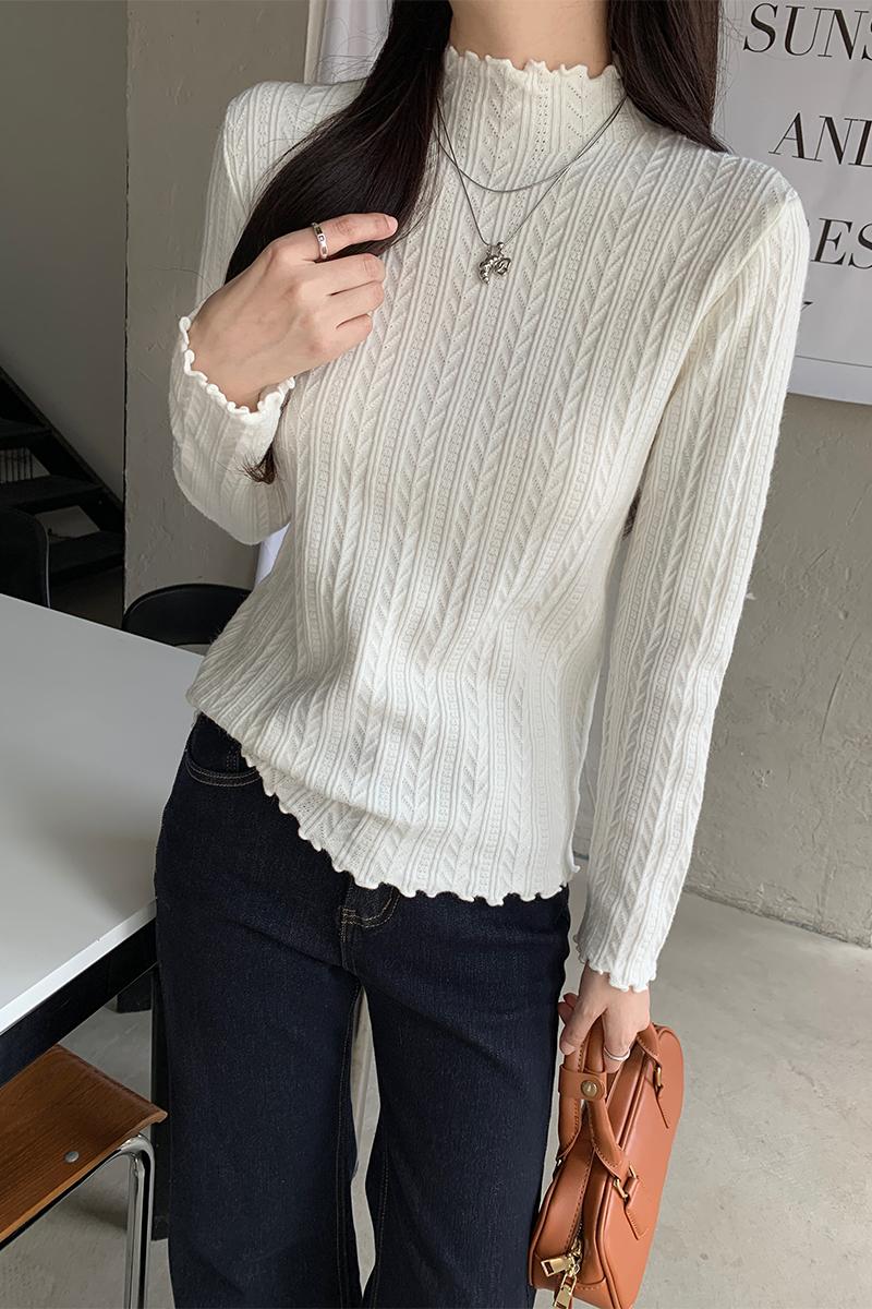 가을·겨울 한국 스타일 텍스처 반하이넥 베이스 스웨터
