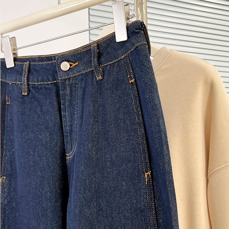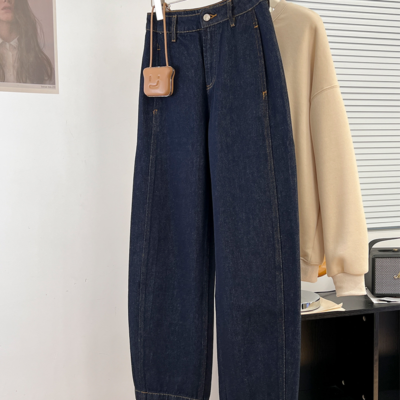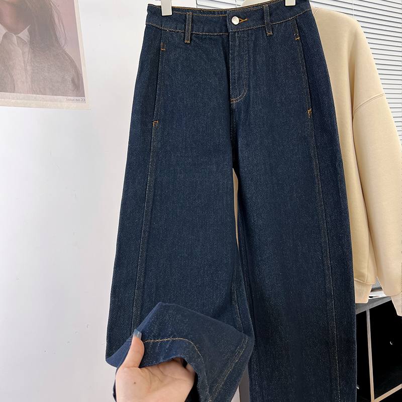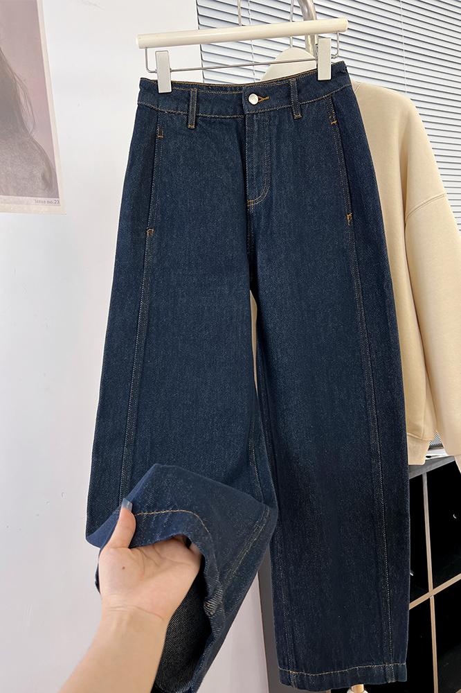 Real-Price Real Shot #retro Blue Jeans Autumn Design 틈새 시장 하이 허리 스트레이트 슬리밍 느슨한 넓은 다리 바지
