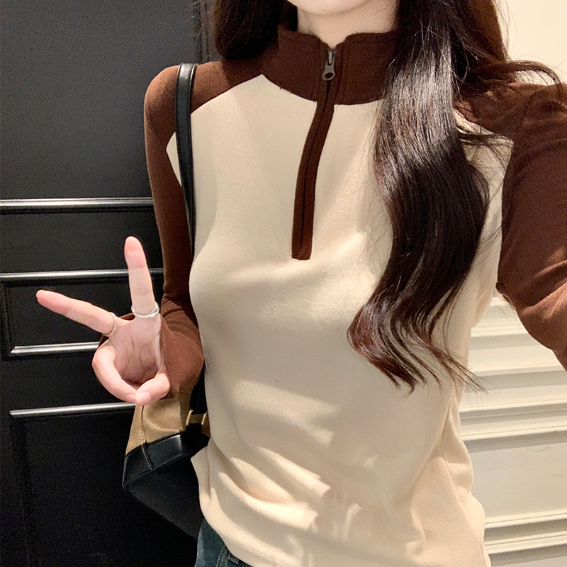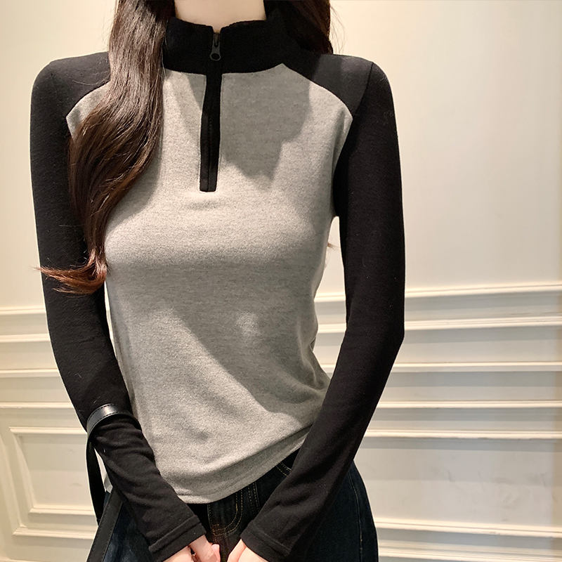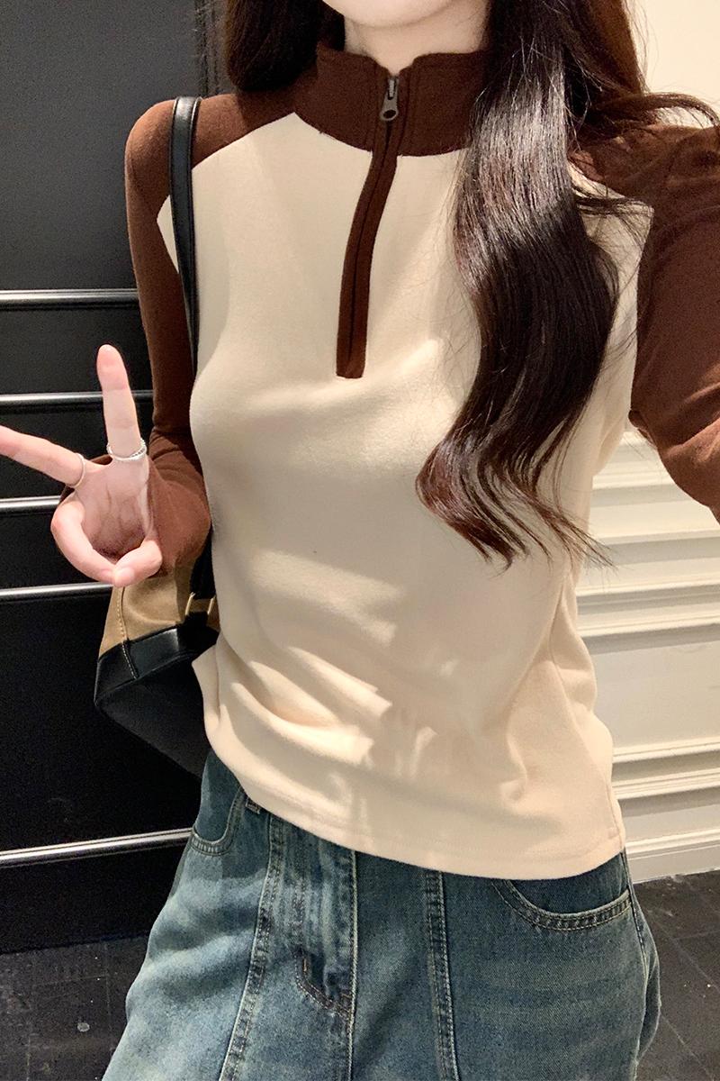 stand Collar 반 지퍼베이스 셔츠 가을 New Design Contrast Top
