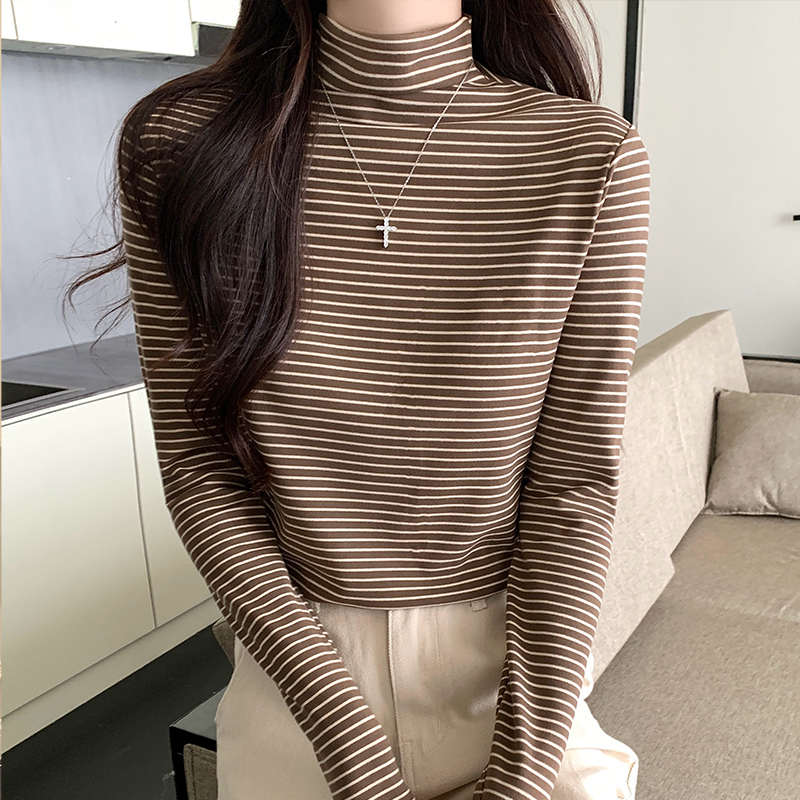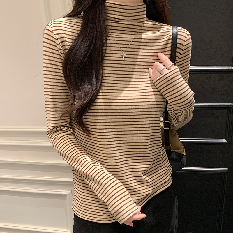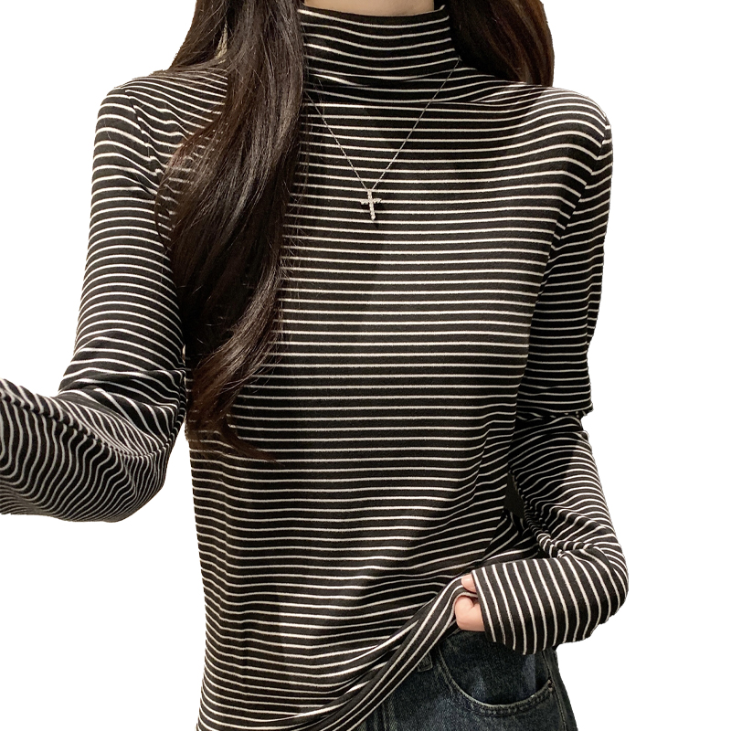 Real Price Real Shot #스프링과 가을의 양면 독일 벨벳베이스에서 여성을위한 긴팔 장점 티셔츠.