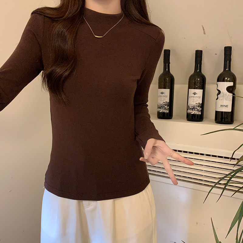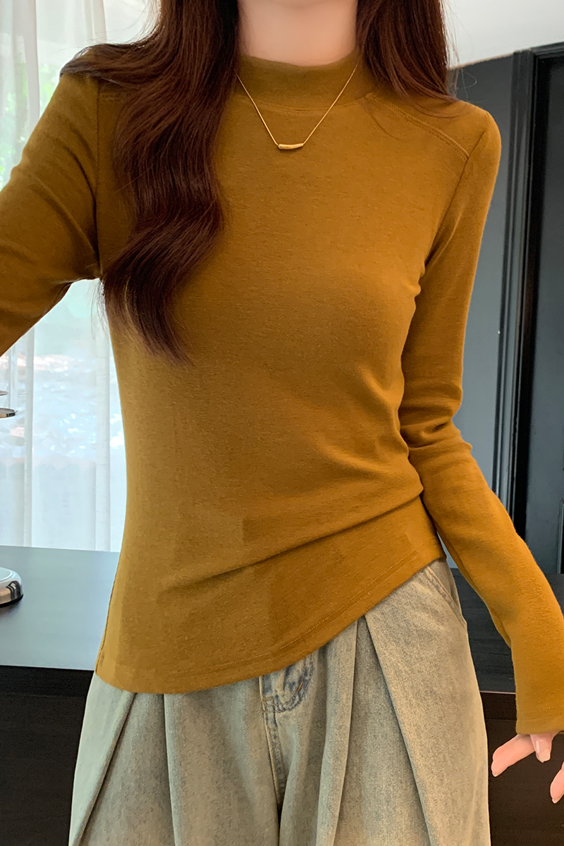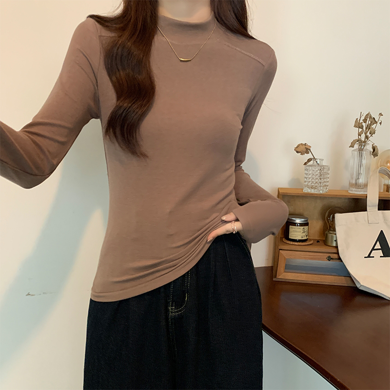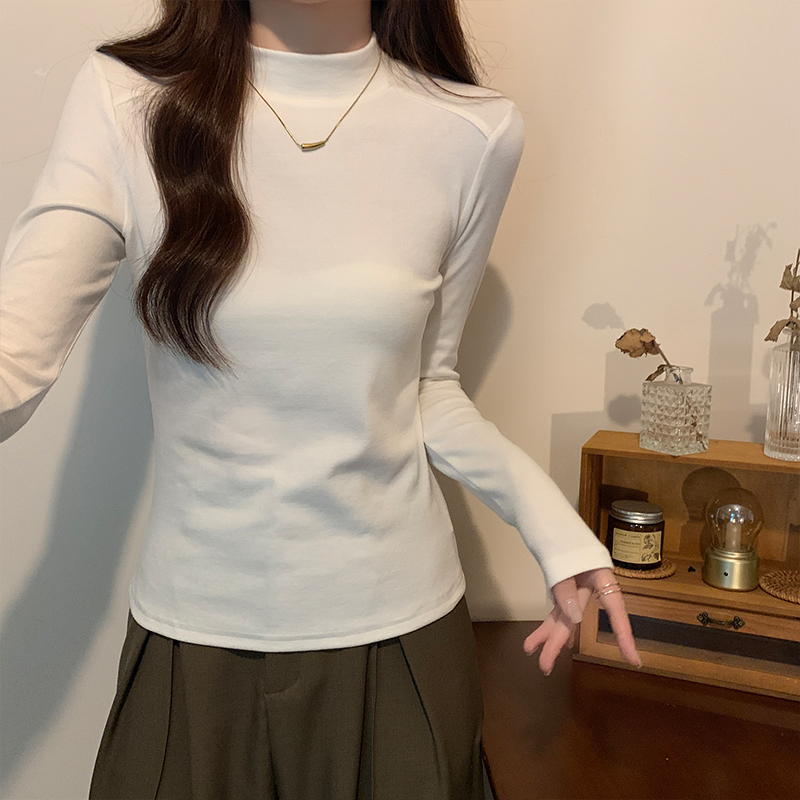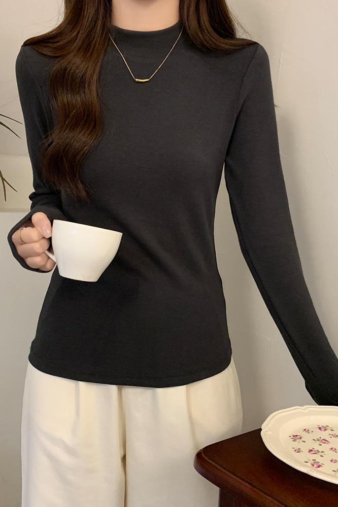 Half-High Long-High Long-Sleeved Cashmere Base Shirt for Women 가을 및 겨울 새로운 스타일 슬림 티셔츠 탑