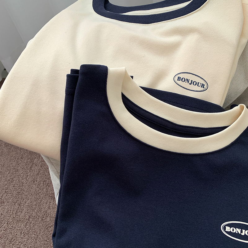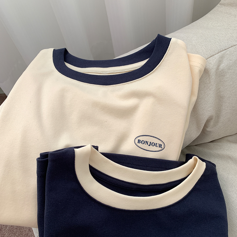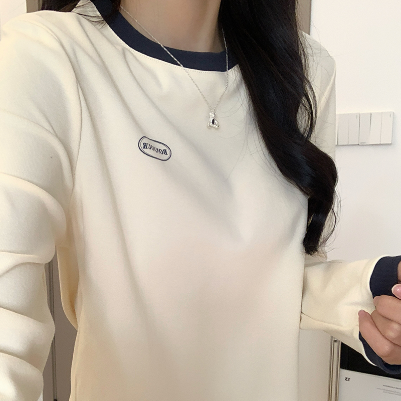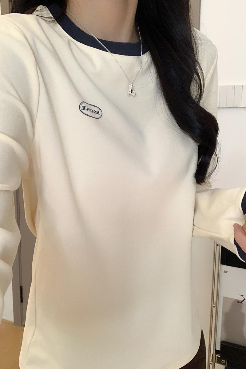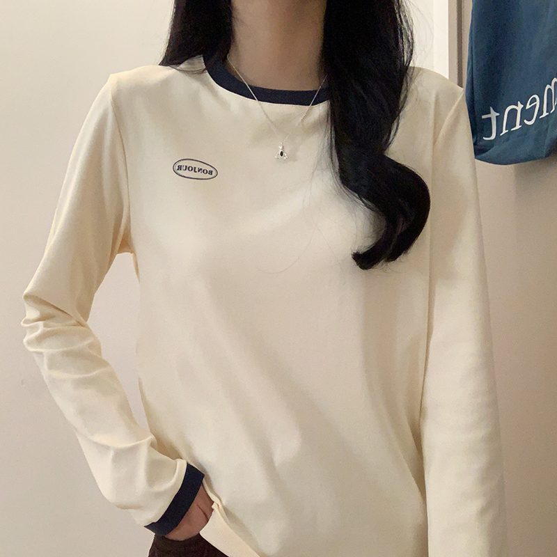 Real Price Real Shot #American Retro Apricot 자수 어깨 긴팔 티셔츠 가을과 여성의 여성을위한 겨울 탑베이스 셔츠