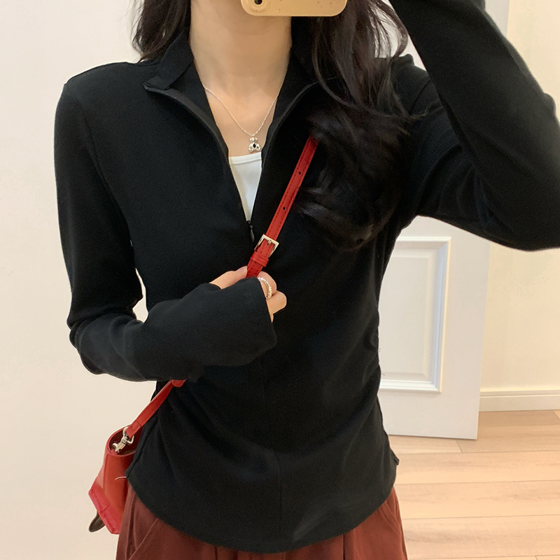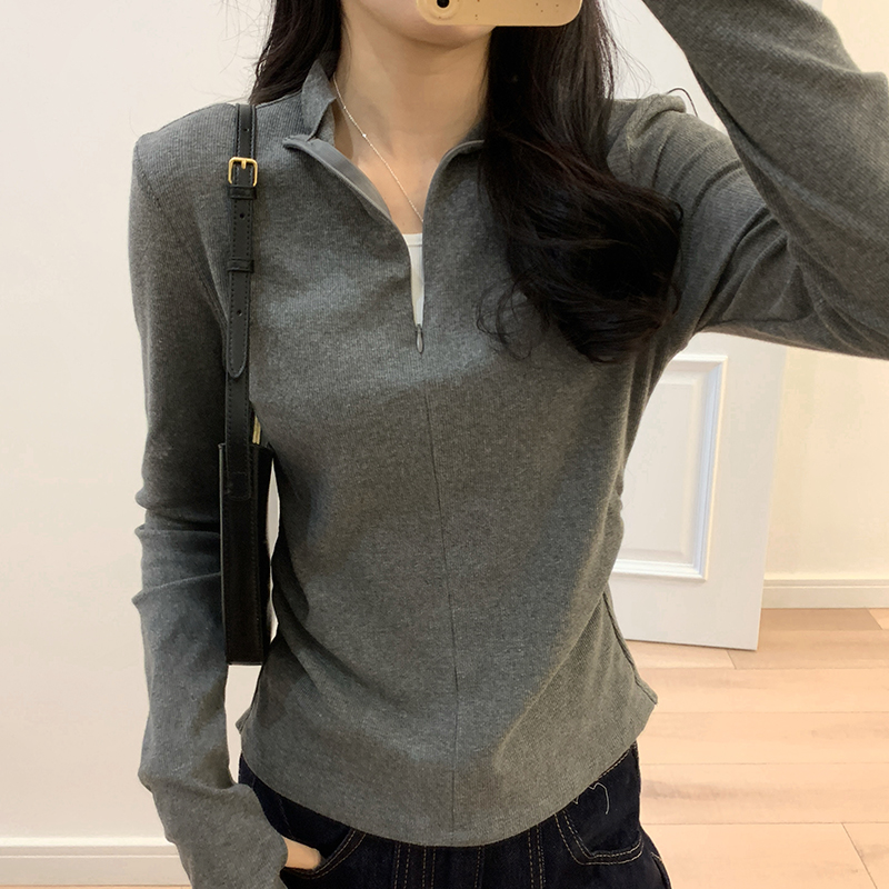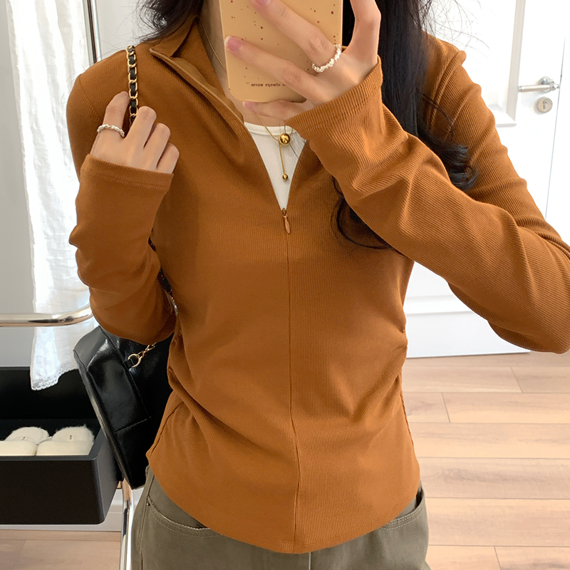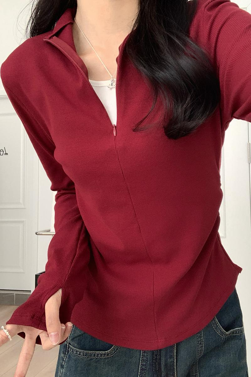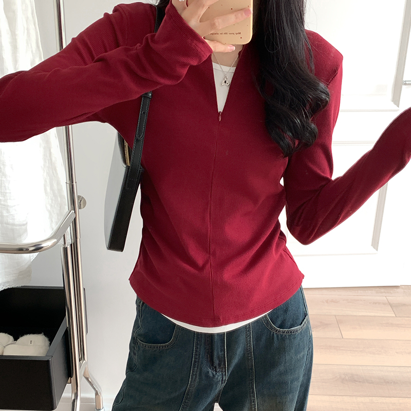 실제 가격 실제 샷 #RED 스탠드 칼라 가짜 2 피스 어깨 어깨 긴팔 티셔츠 가을과 겨울 슬림베이스 셔츠 속옷