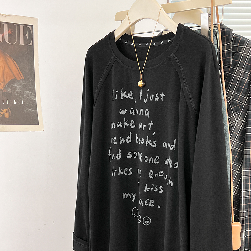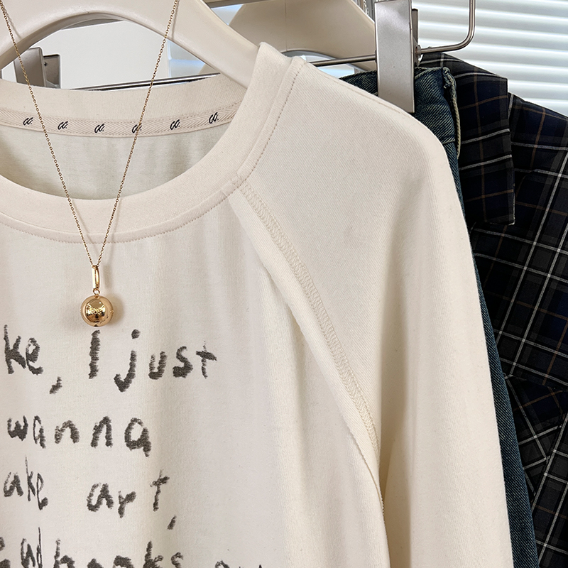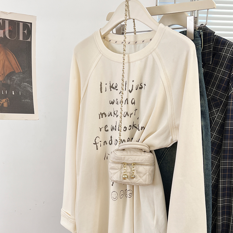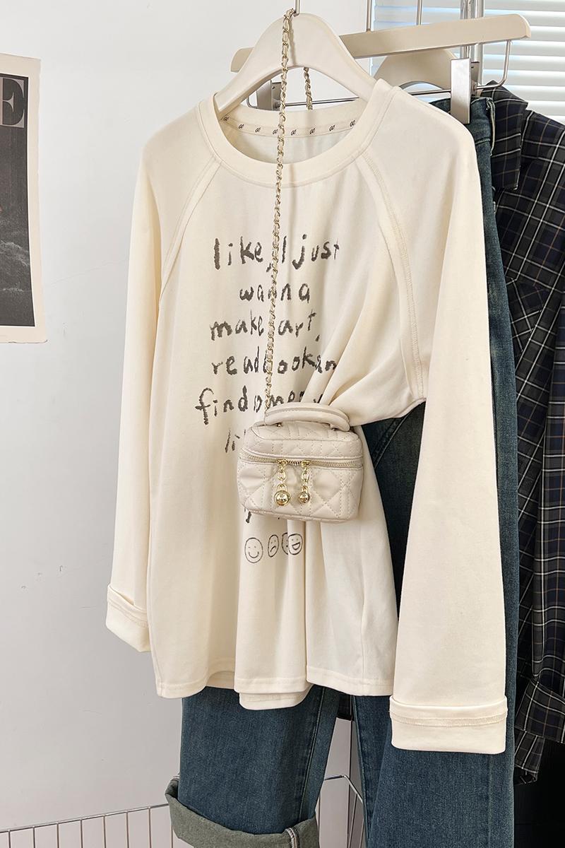 실제 가격 실제 샷 #Apricot 편지 인쇄 모호한 어깨 소매 긴 소매 티셔츠 가을 티셔츠베이스 셔츠 속옷