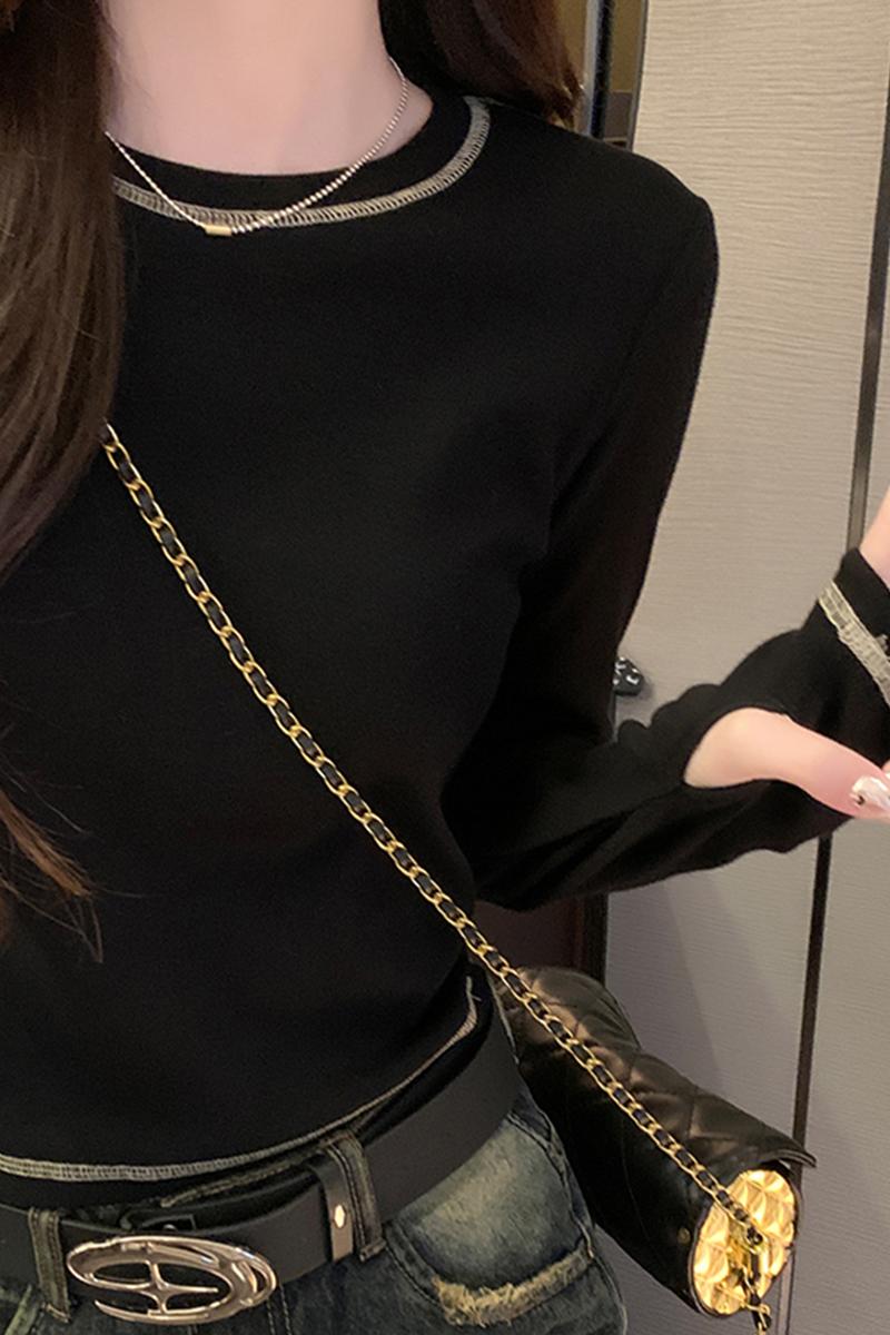 Real-Price Real Shot #American Retro Short Front Shouows Long Sleeve 티셔츠 가을과 겨울 디자인 여성을위한 겨울 디자인 최고의베이스 셔츠