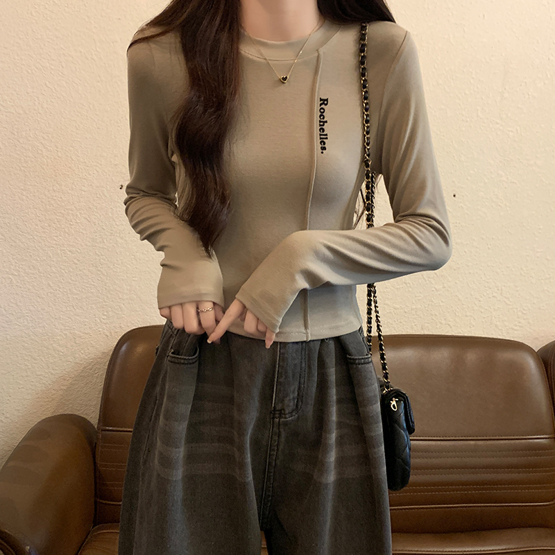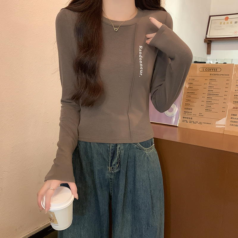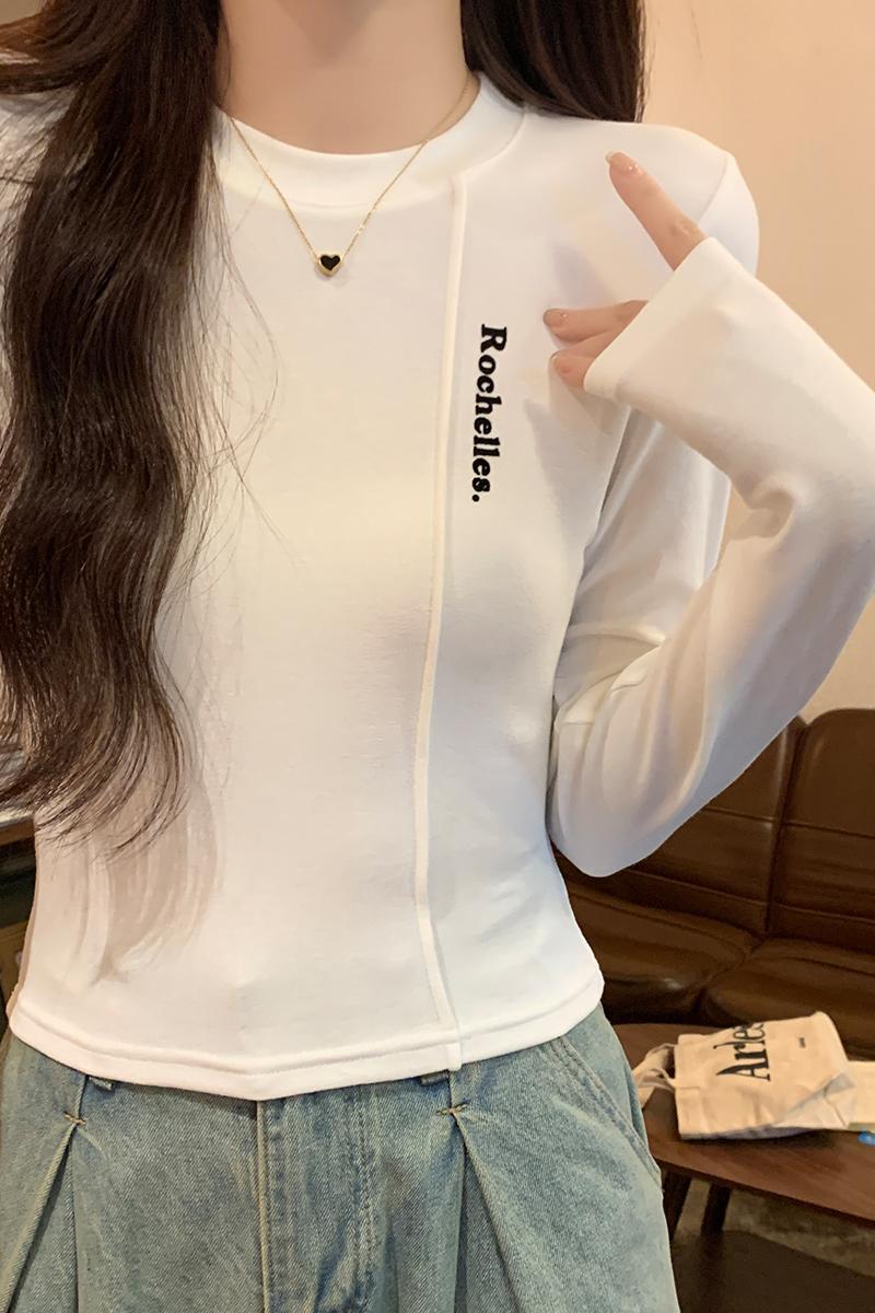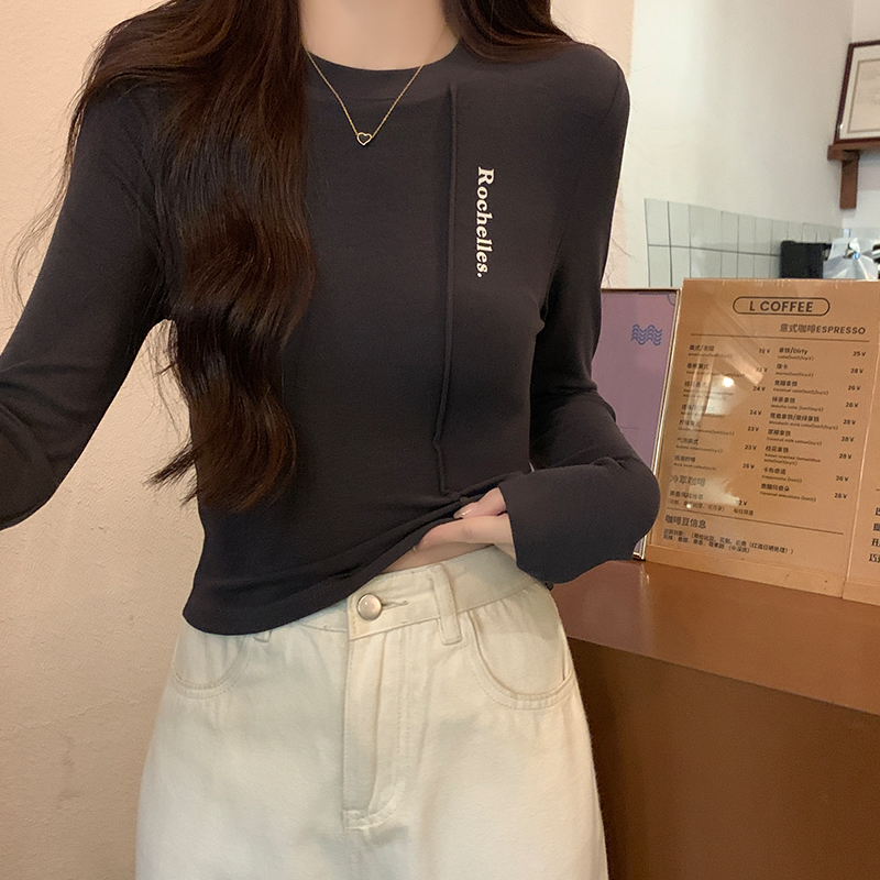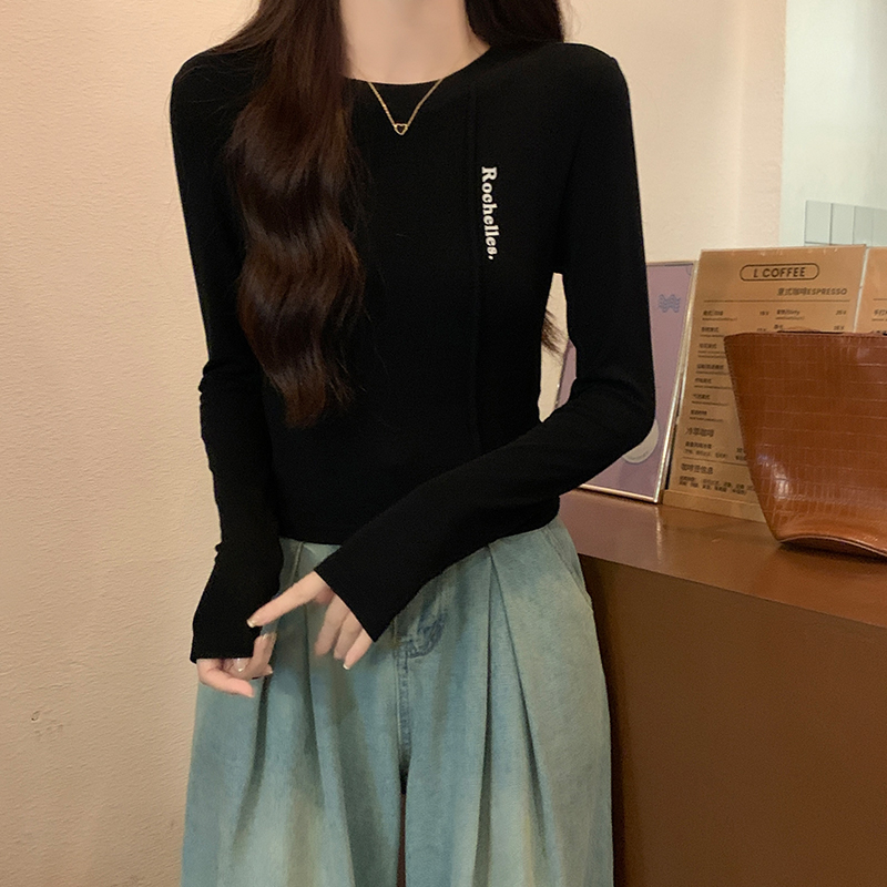 Real Price Real Shot #Long-Sleeved 티셔츠 여성 Hot Girl High Waist Top 여성 디자인 틈새 가을 라운드 목 안쪽베이스 셔츠
