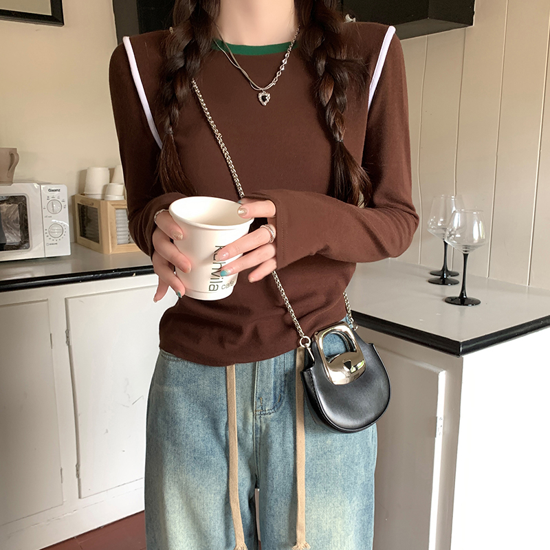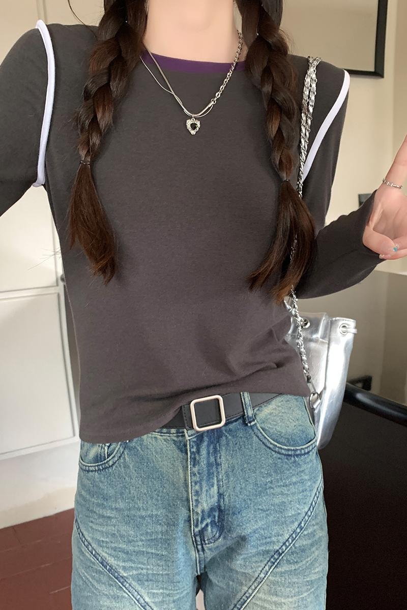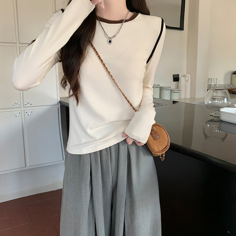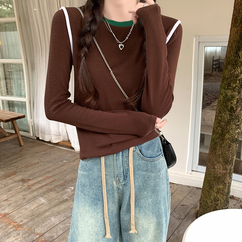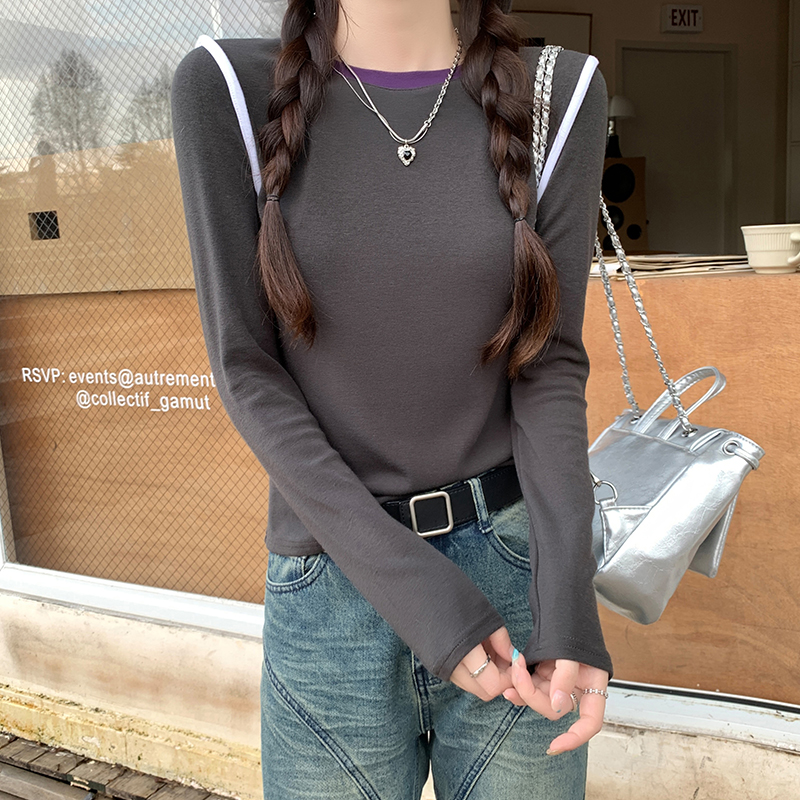 Real-Price Real Shot #American Retro Cashmere Front Shoulder Long-Sleeved T-Shirt에서 가을 디자인 하단 셔츠