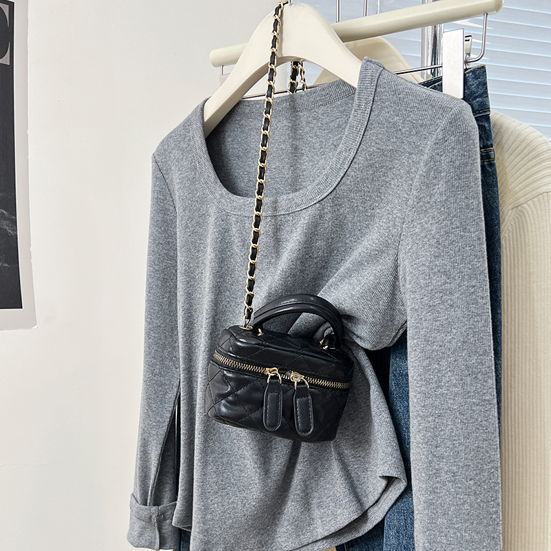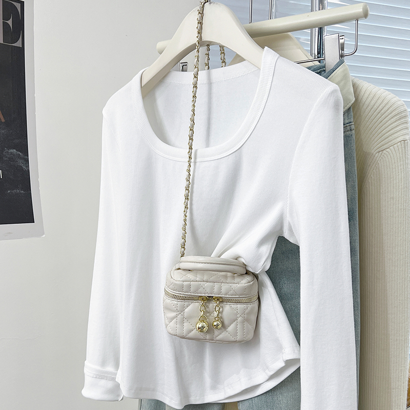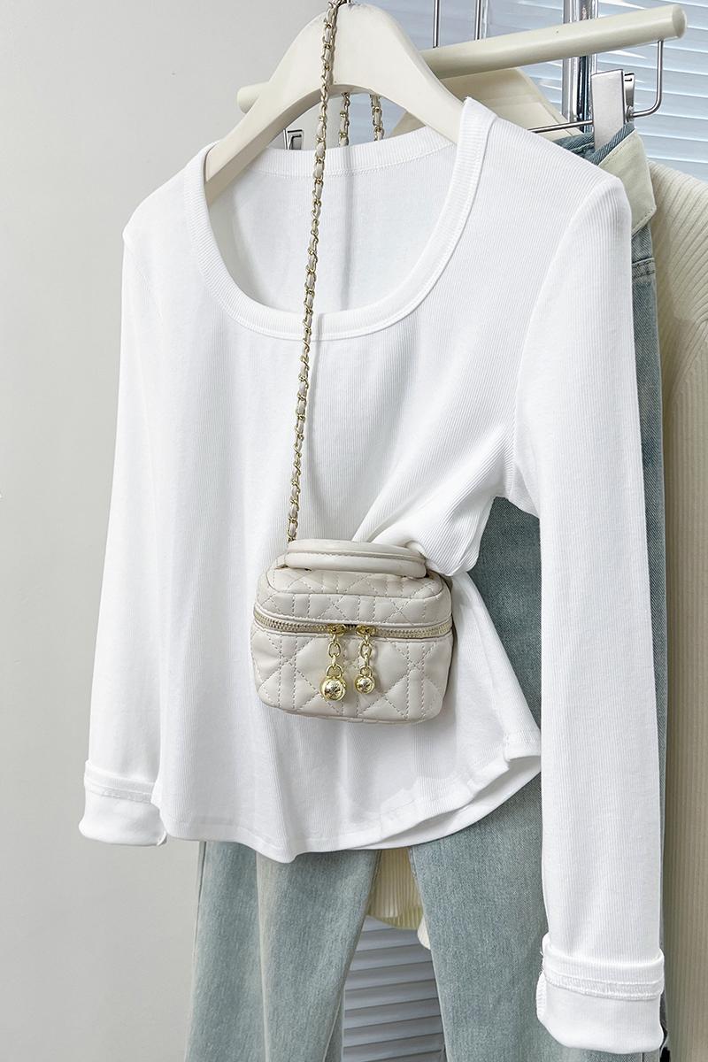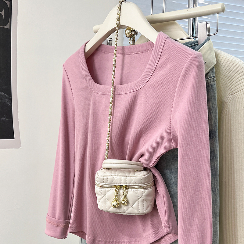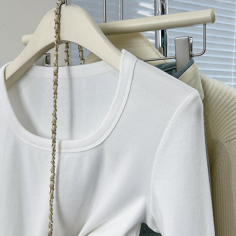 Real Price Real Shot #White Cotton Front Shires Square Collar Long Sleeve T-Spring Base 셔츠 작은 Top Trendy