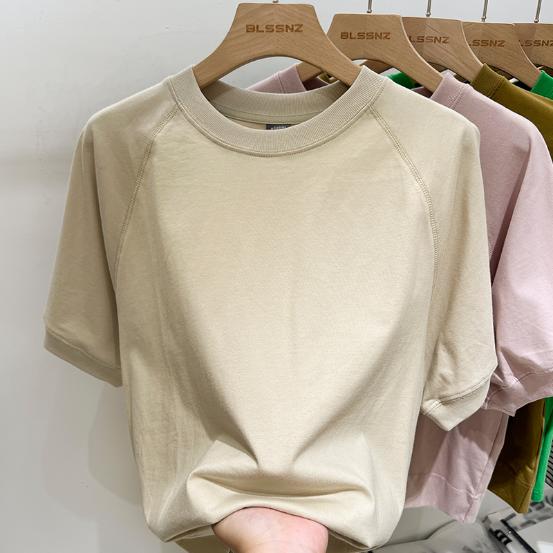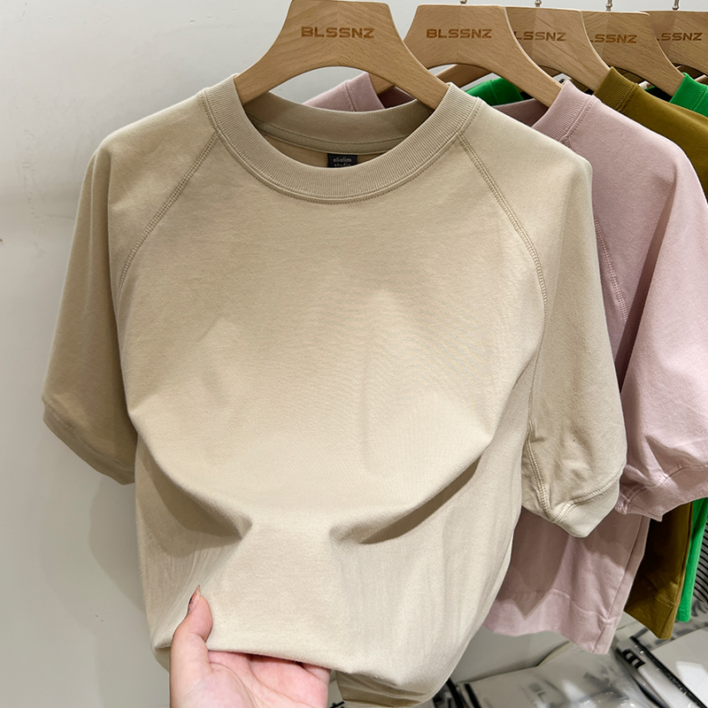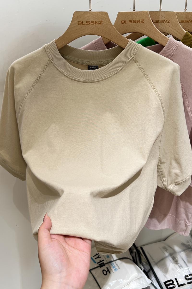 진짜 가격 실제 샷 #Apricot 컬러 라운드 목 rattle 슬리브 여름에 여성을위한 짧은 슬리브 티셔츠