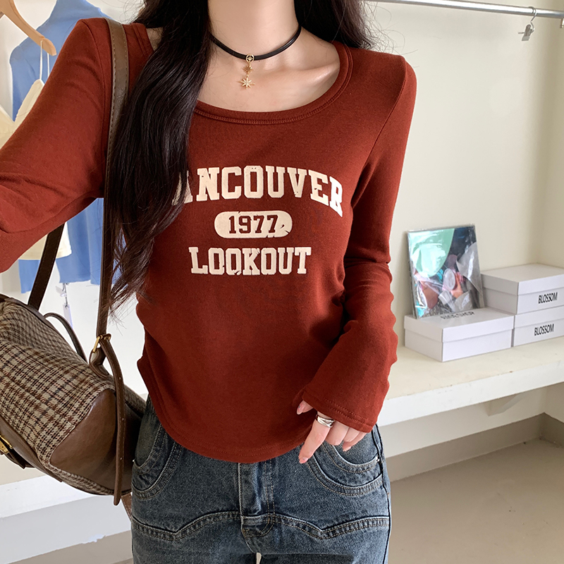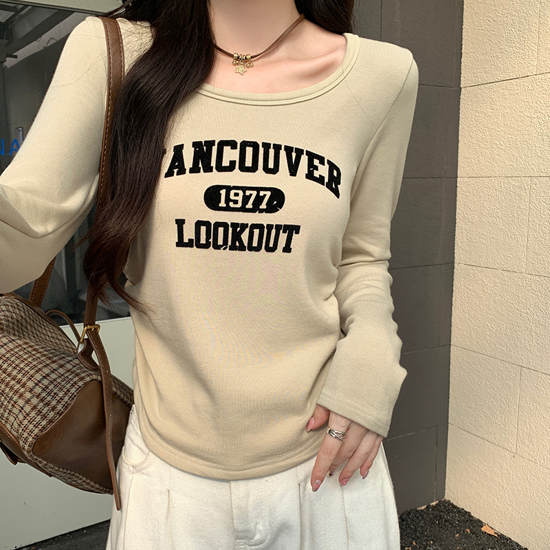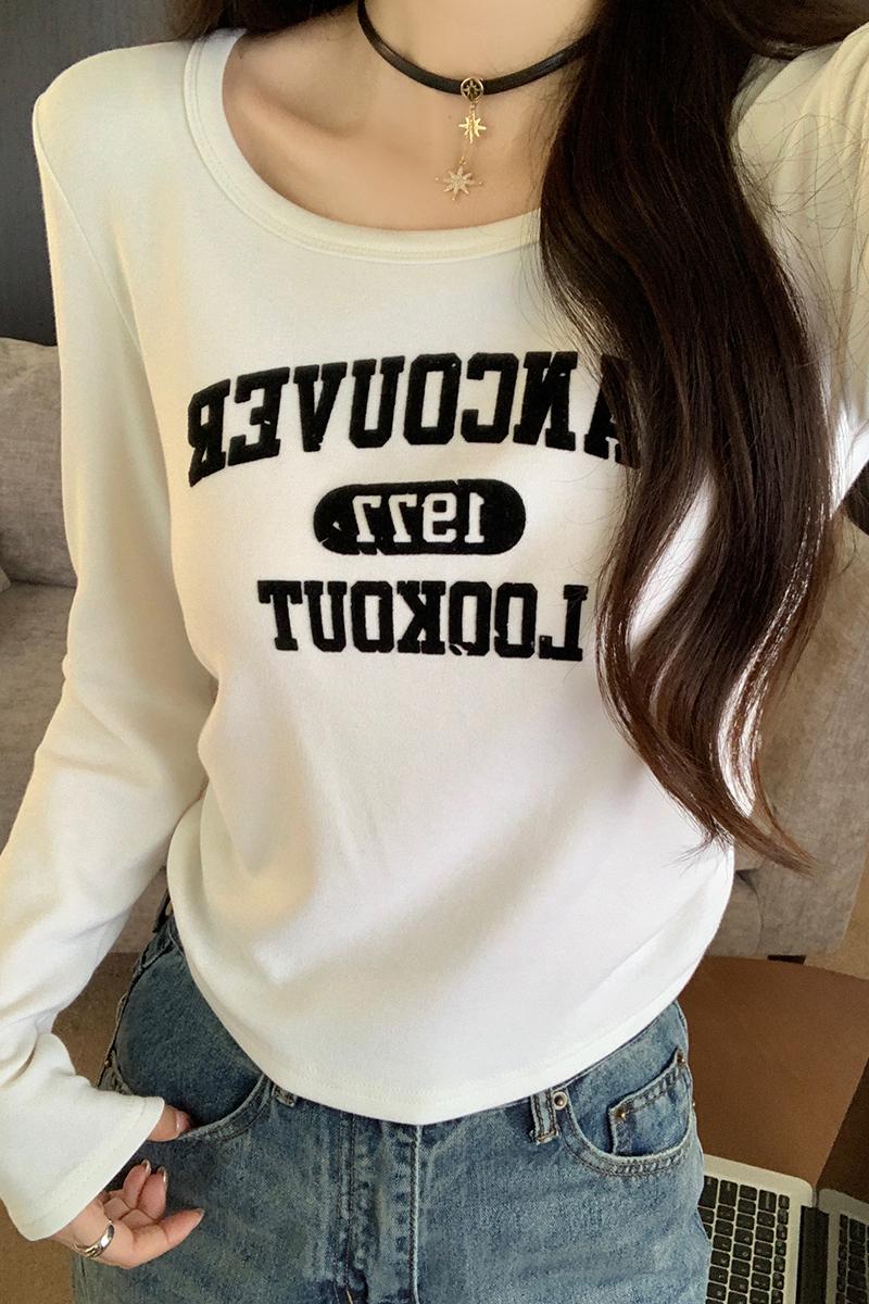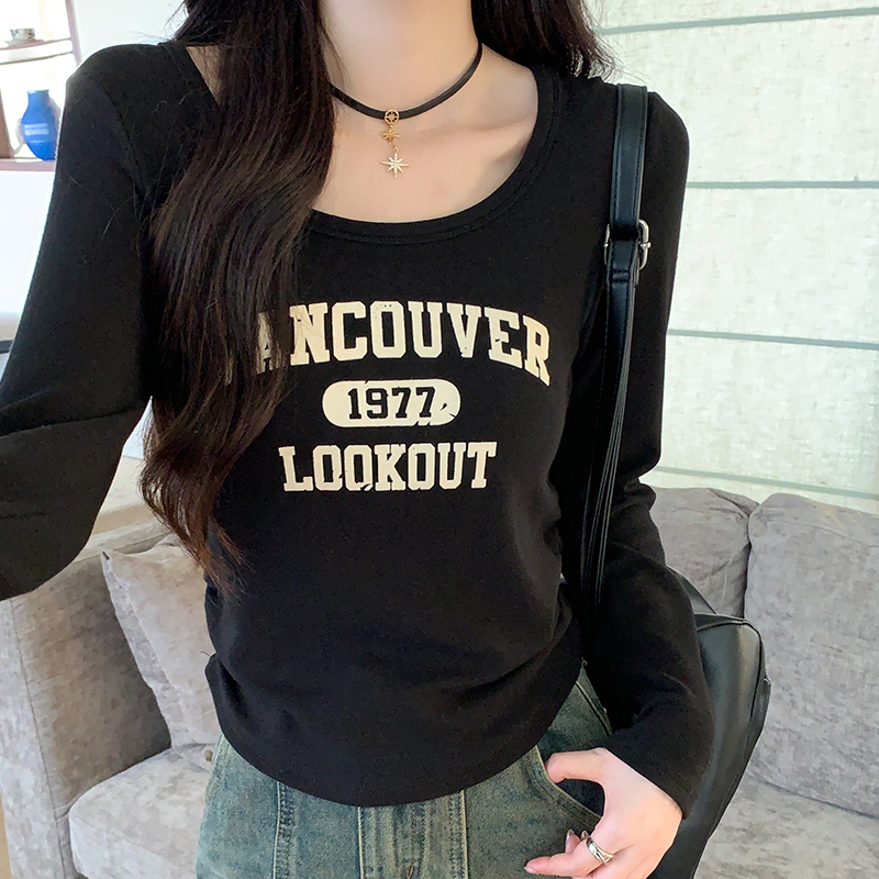 실제 가격 실제 샷 #Maillard 's hairy u collar 불규칙 어깨 롱 슬리브 티셔츠 여자 가을과 겨울 아메리칸베이스 셔츠 탑