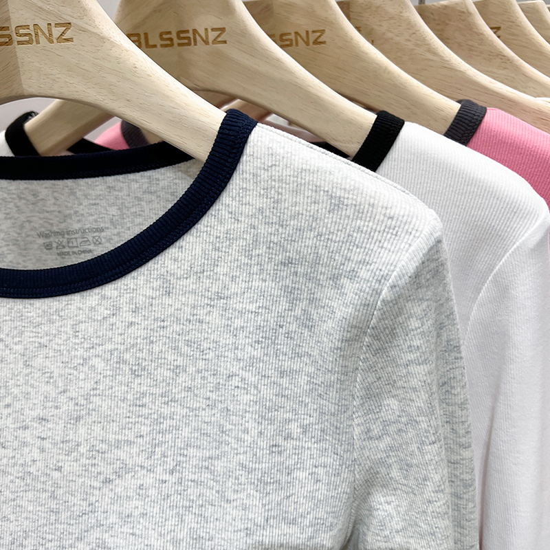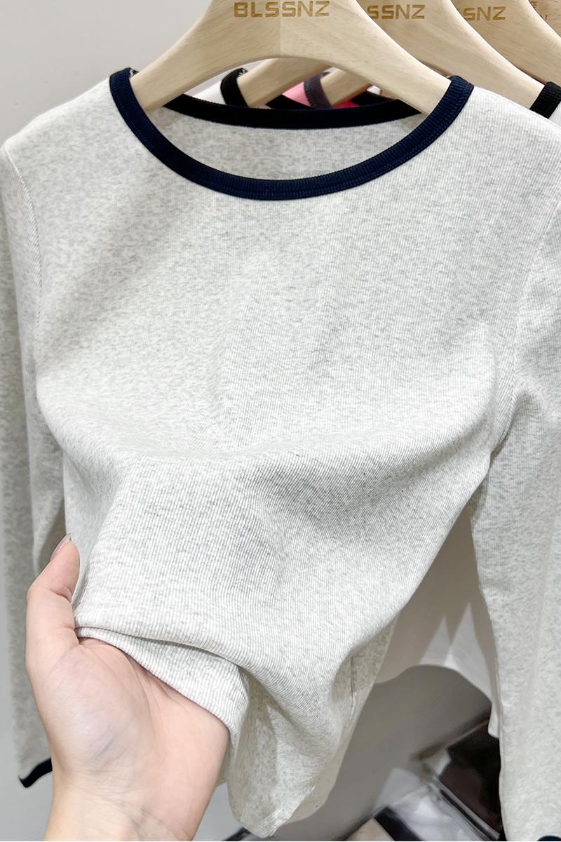Real-Price Real Shot #American Retro Front Shoulder Long-Sleeved 티셔츠 봄과 가을 디자인 틈새 기본 셔츠 속옷