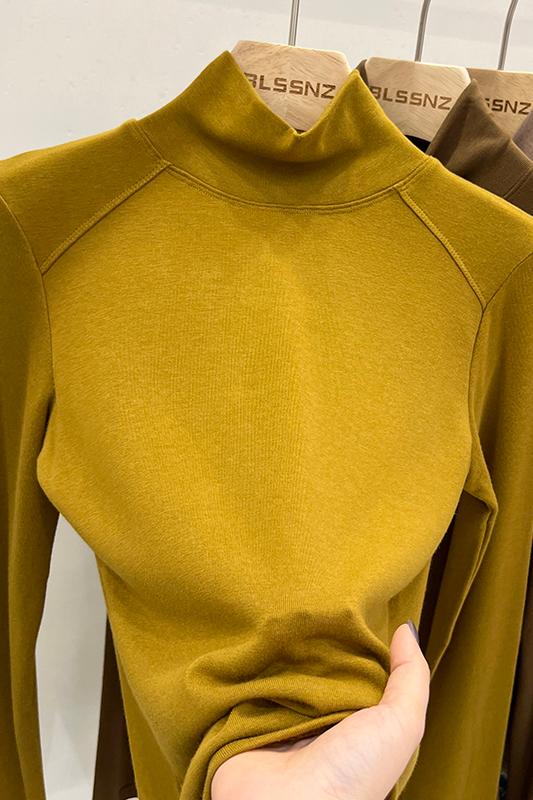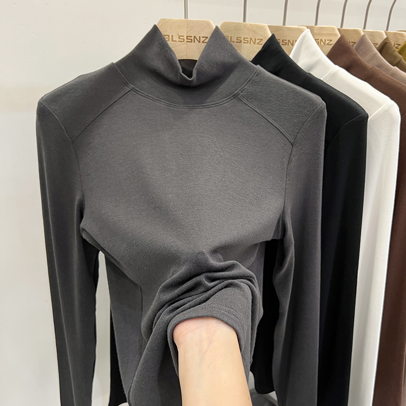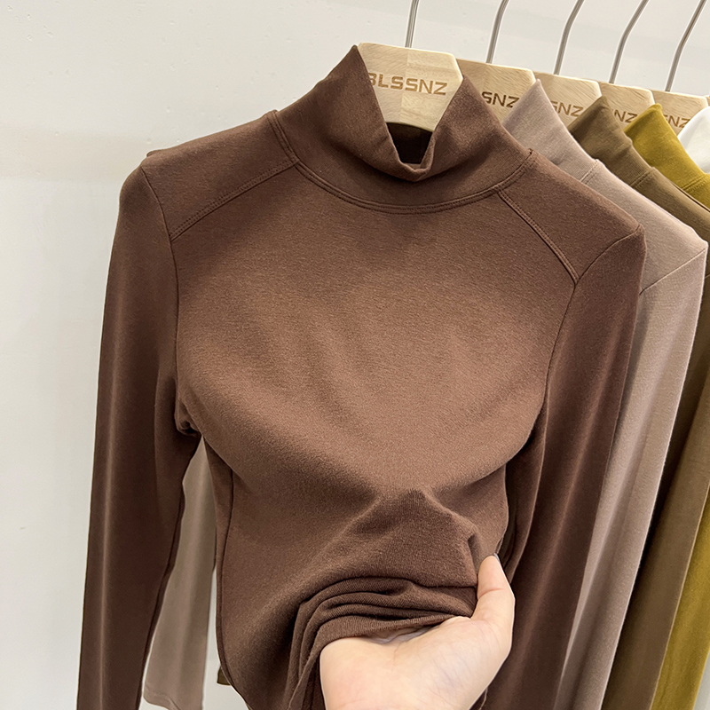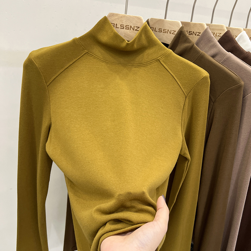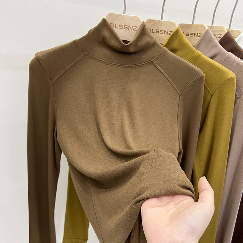 실제 가격의 실제 샷 #Warm Cashmere Middle-Neck Turtleneck 여성을위한 여성용 가을과 겨울에 스플린트 긴팔 티셔츠