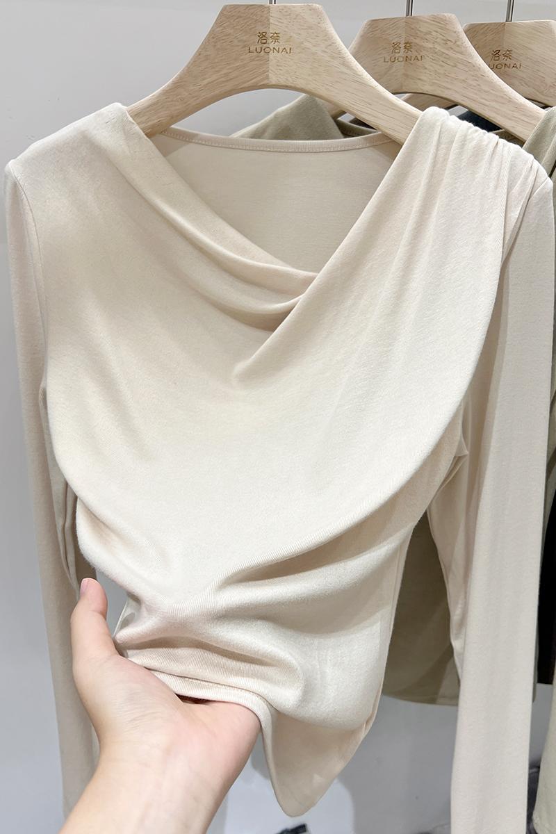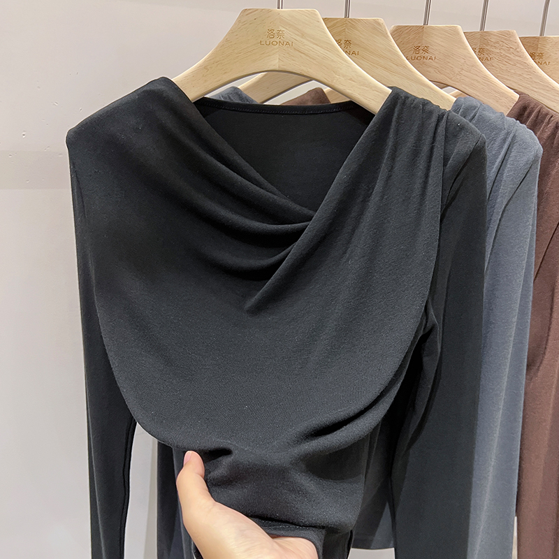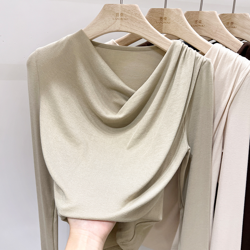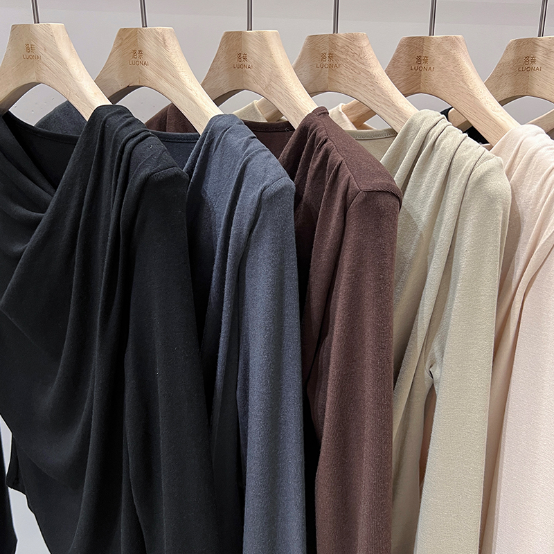 실제 가격의 실제 샷 #모달 짧은 불규칙 V- 넥 장거리 티셔츠 가을 슬림베이스 셔츠 속옷