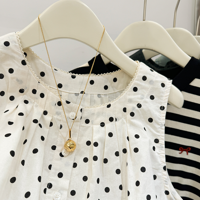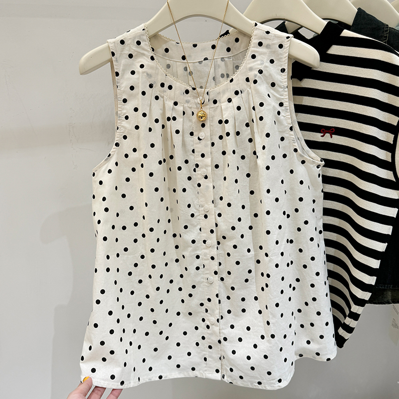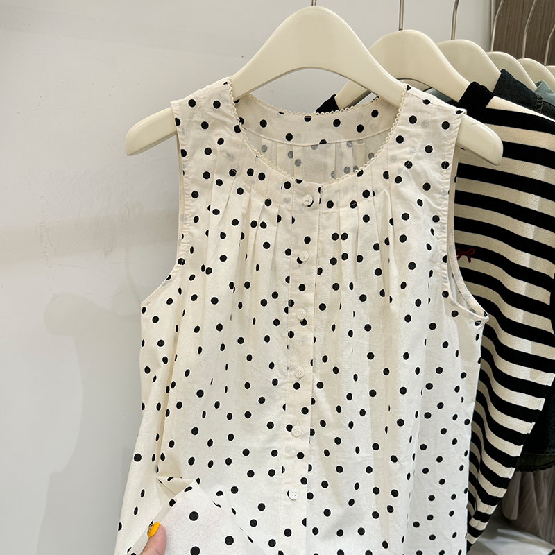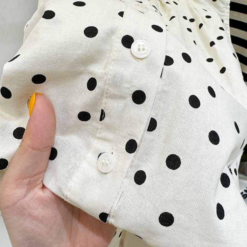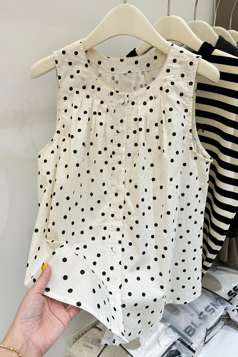 진짜 가격 실제 샷 #french 폴카 도트 민소매 셔츠 여름 셔츠에서 여성을위한 작은 캐주얼 느슨한 인형 셔츠 탑