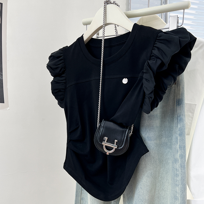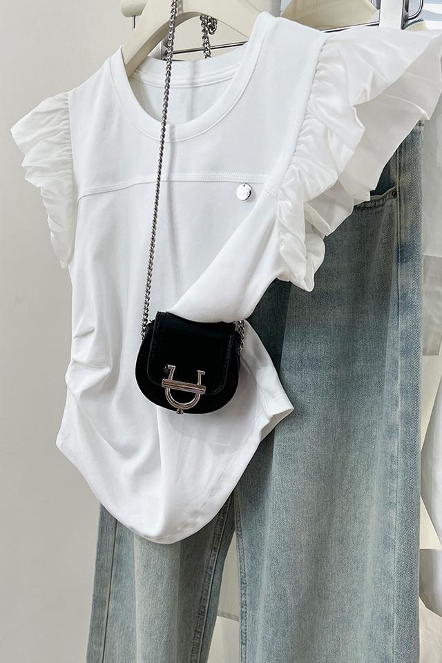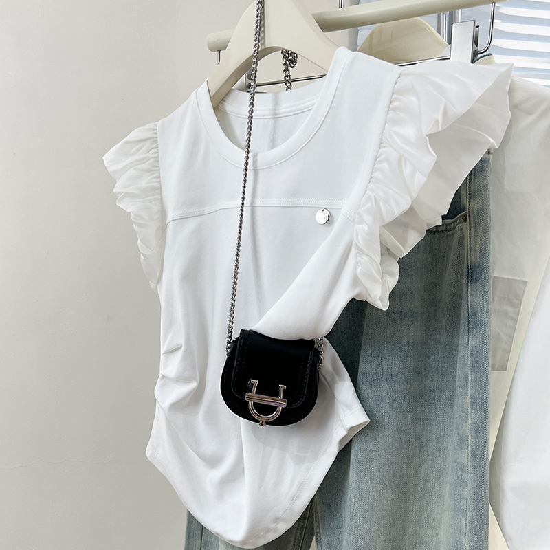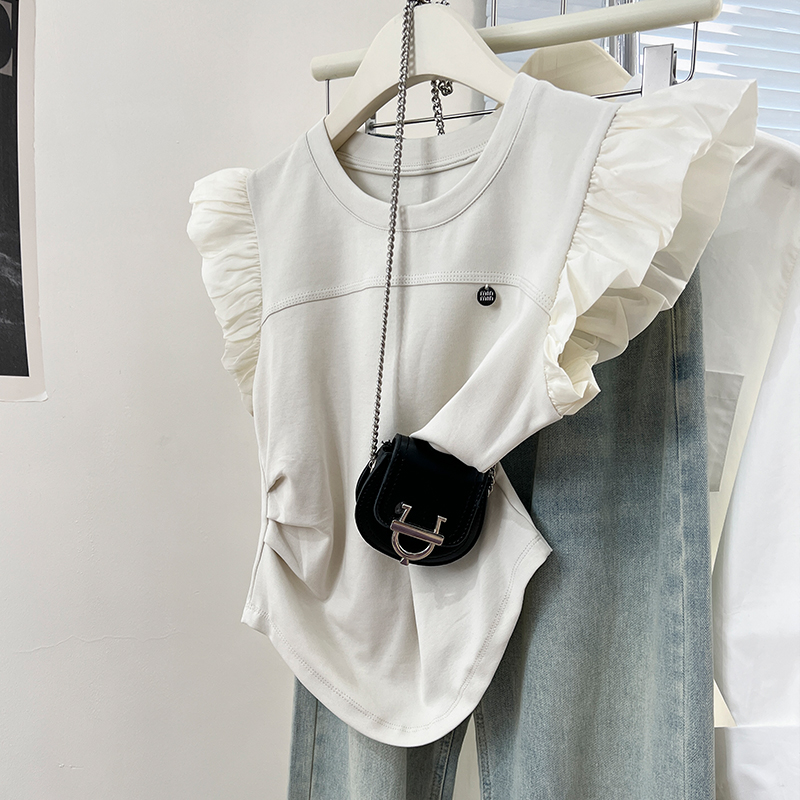 실제 가격 실제 샷 #화이트 작은 비행 슬리브 여름 여름 소매 소매 소매 조끼 고급 주름 탑