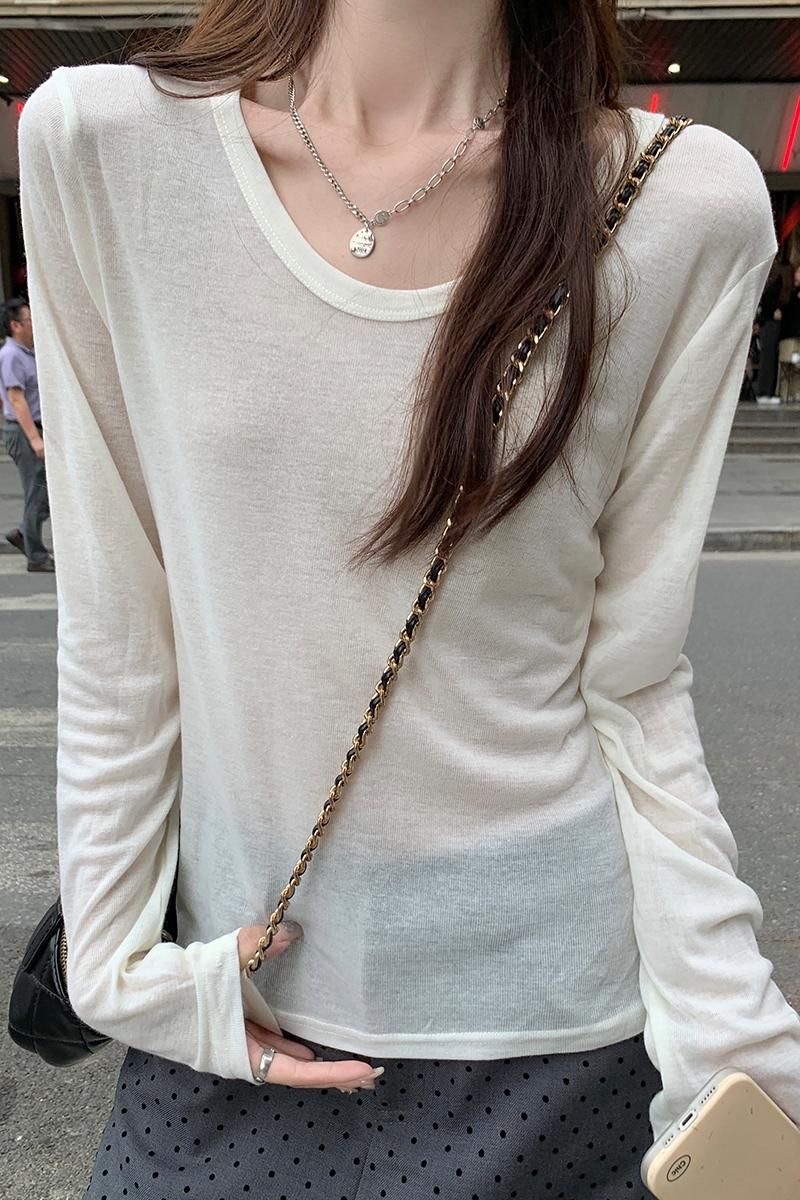실제 가격 진짜 샷 #Thin Sunscreen v-neck 앞쪽 어깨 롱 슬리브 티셔츠 여름 틈새 시장에서 여성용 티셔츠 에어컨 셔츠 탑