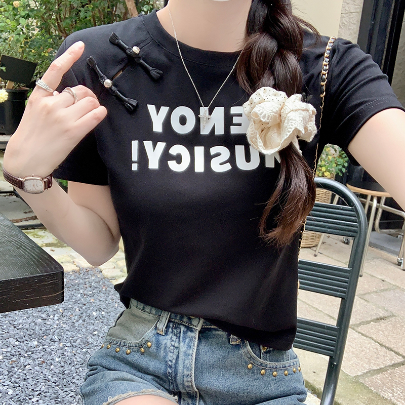 Real-Price Real Shot #Black New New Chinese Style Swash Plate 버튼 어깨 짧은 슬리브 티셔츠 여름 디자인 틈새 틈새 시장