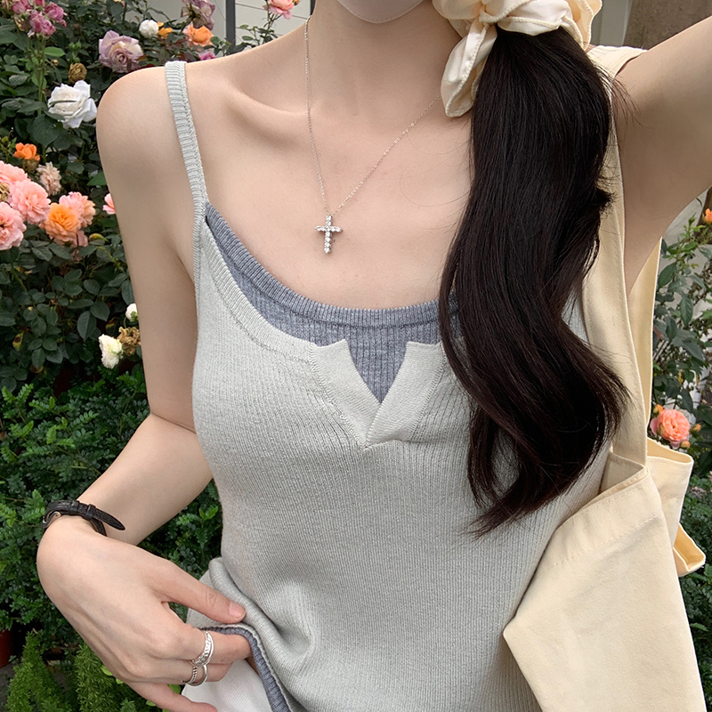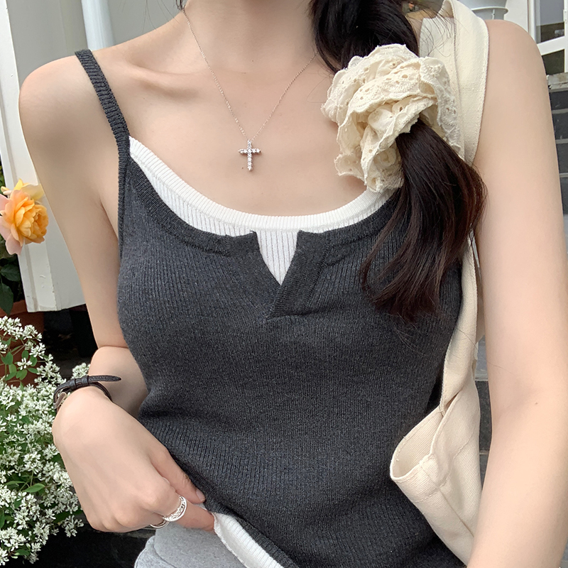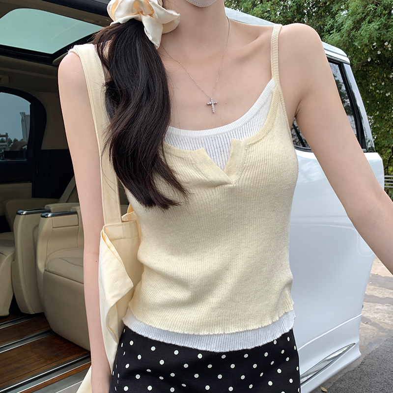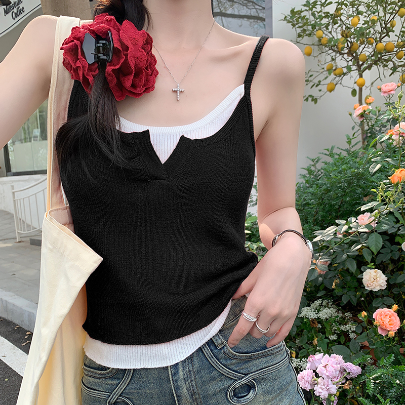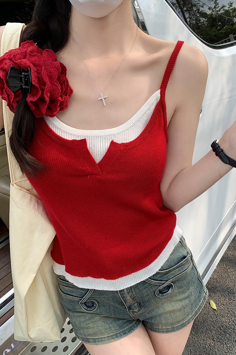 RED 가짜 2 피스 작은 서스펜더 조끼는 내부 바닥 여름 새로운 외부 탑을 가진 여성