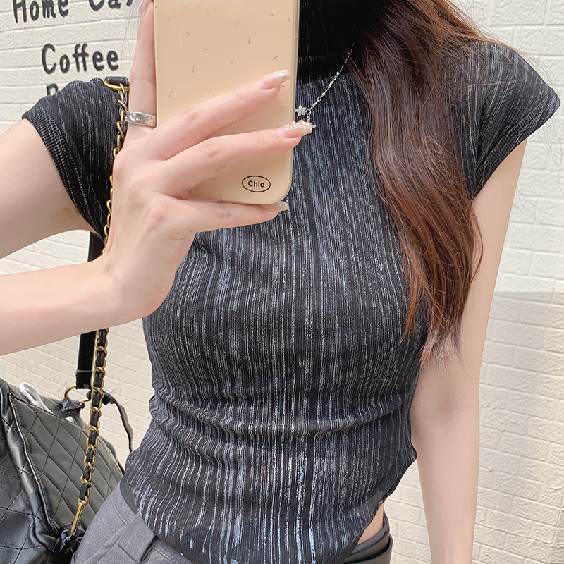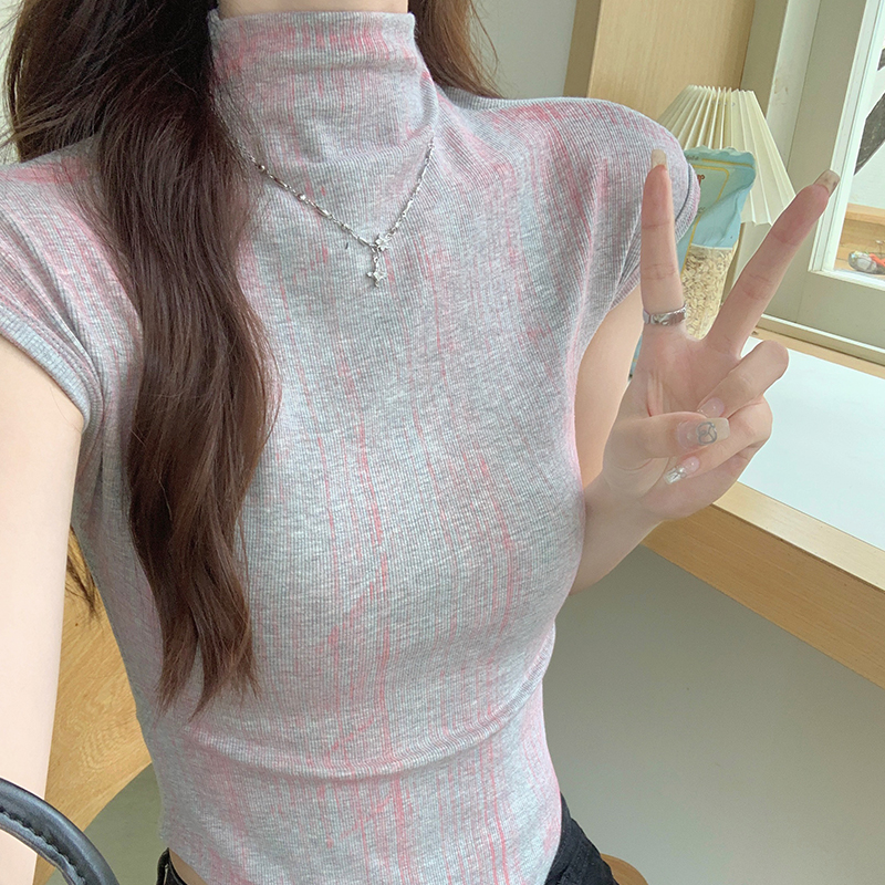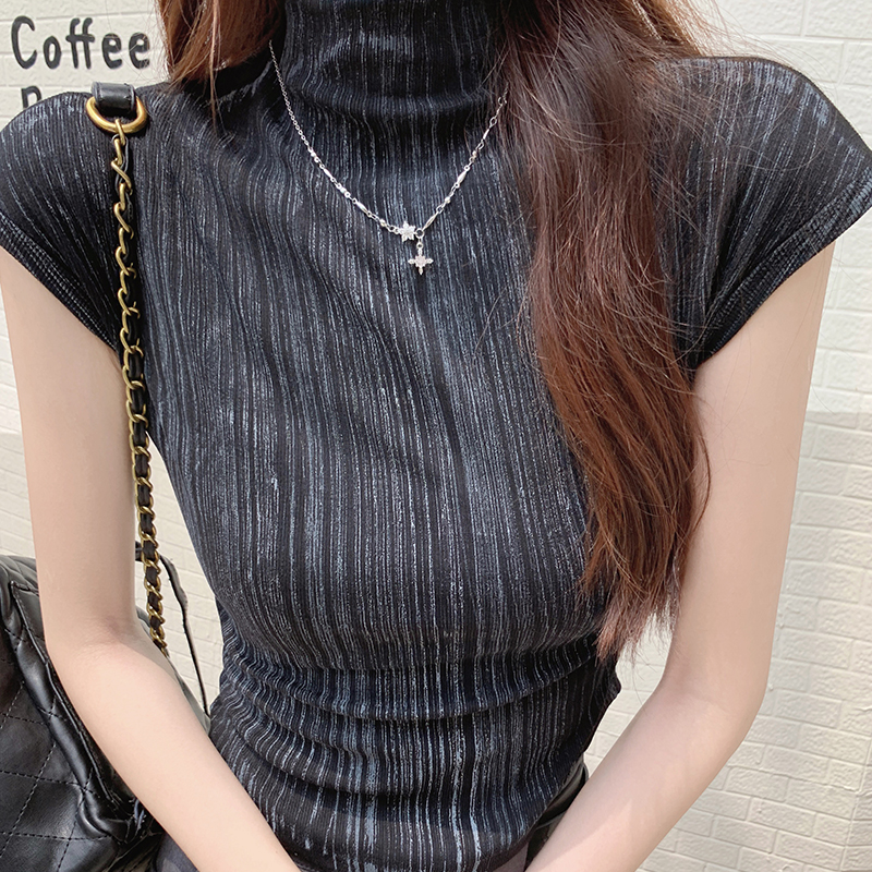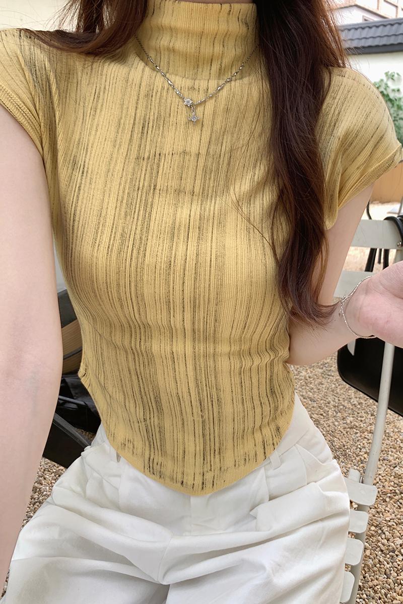 Yellow Half Turtle Turtle Sleeveless Vest T-Shirt in Summer New Short Irregular Top