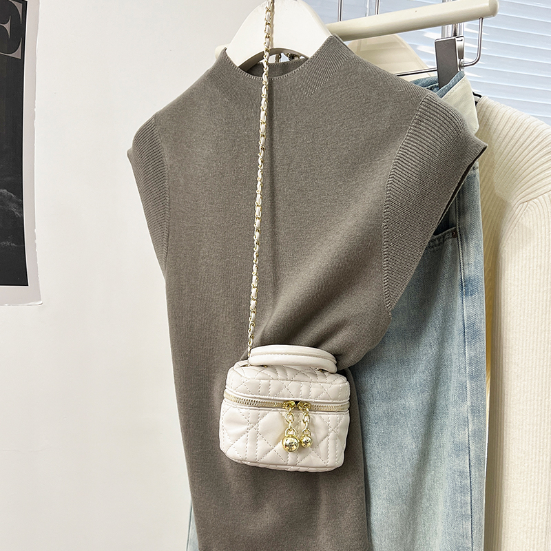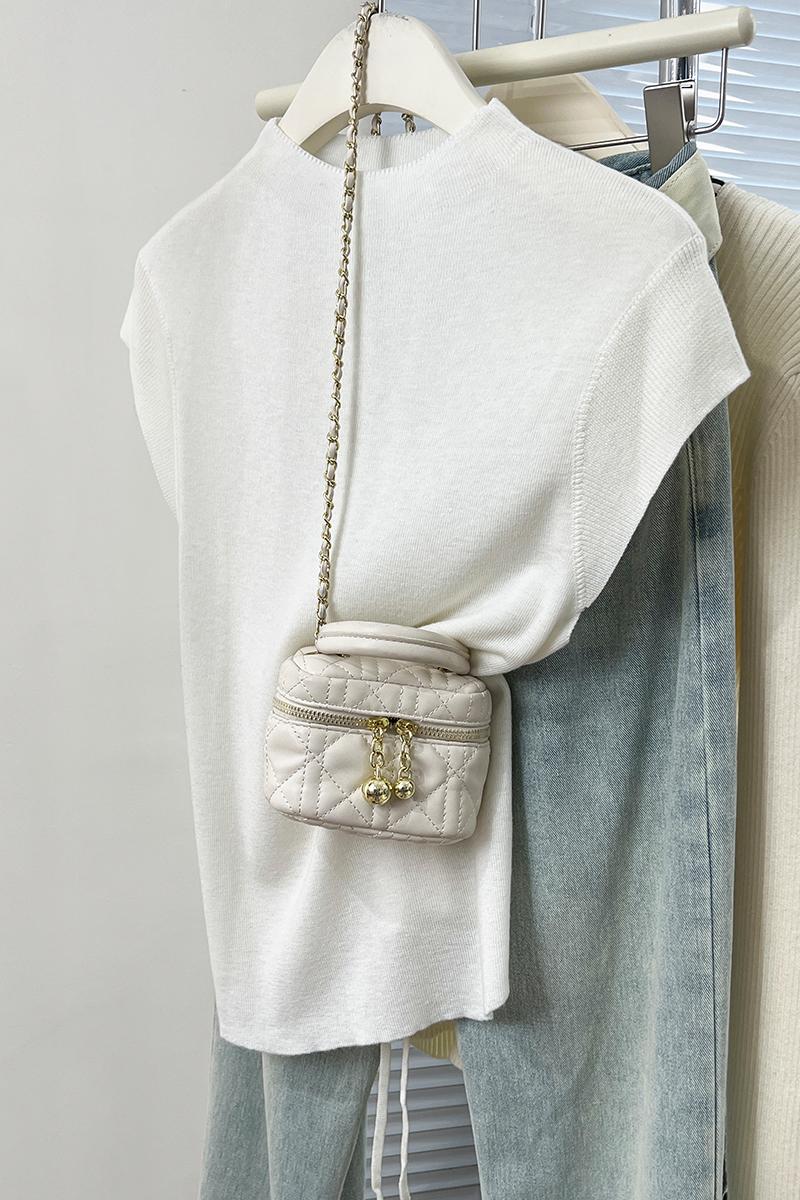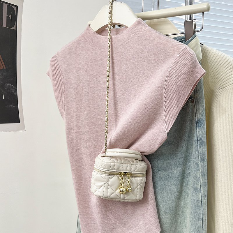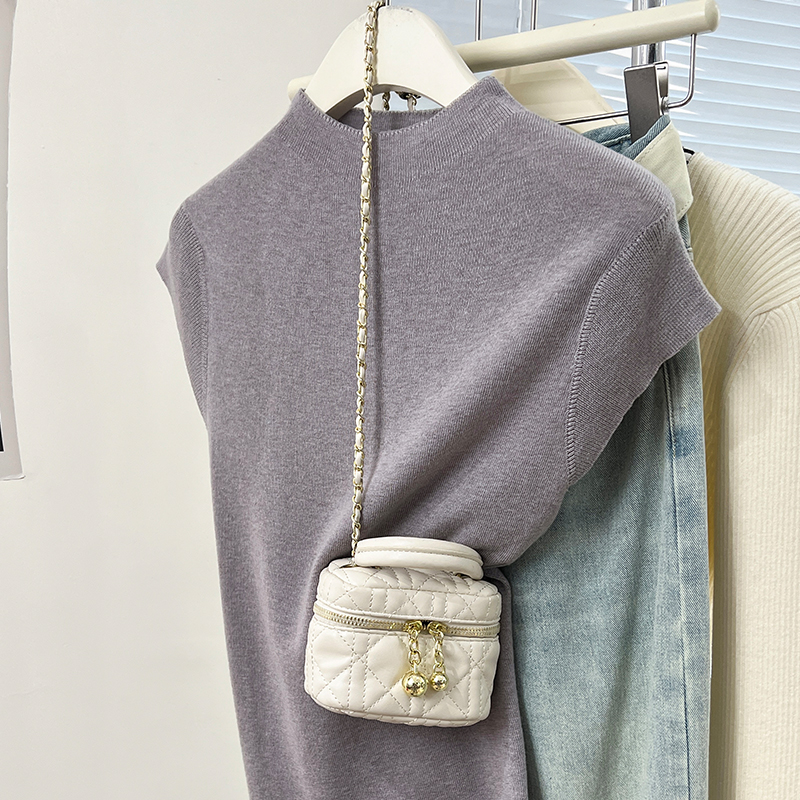 진짜 가격 실제 샷 #화이트 백 묶인 반 터틀넥 스웨터 봄과 가을 민소매 조끼 작은 비행 소매 티셔츠 탑