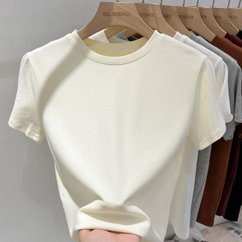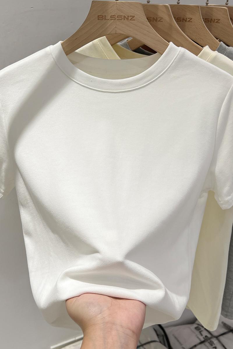Real-Price Real-Life Shot # 기본적인 흰색 순수면 어깨 짧은 슬리핑 티셔츠 봄과 여름 및 여름베이스 셔츠 속옷 티셔츠 탑