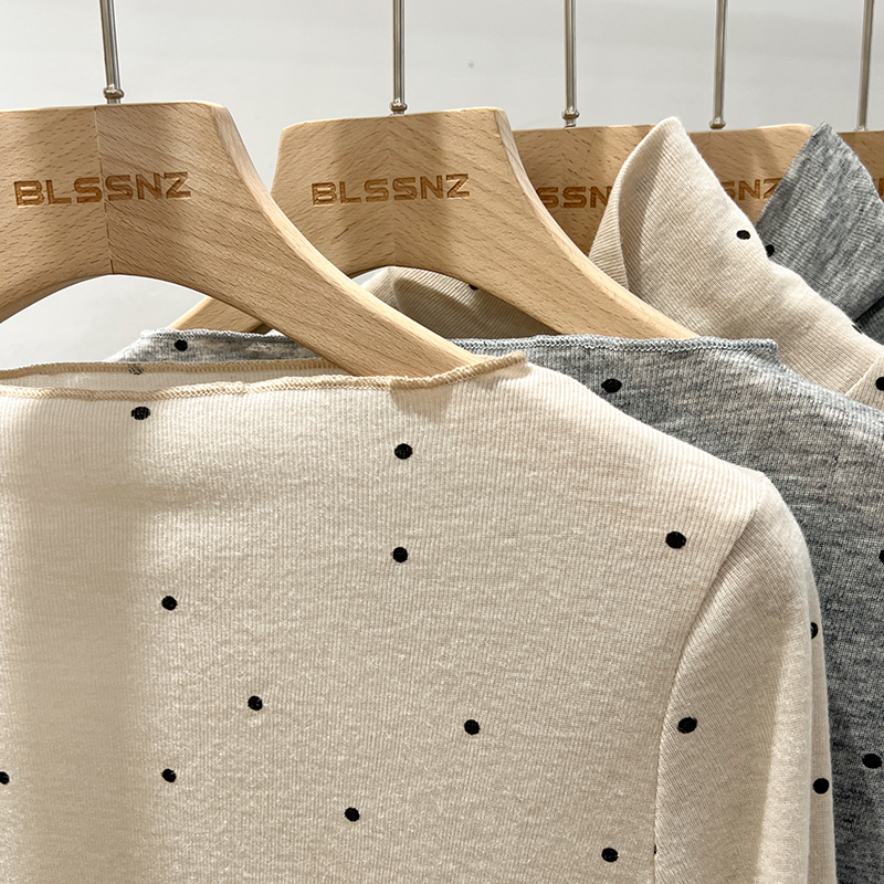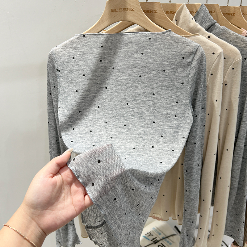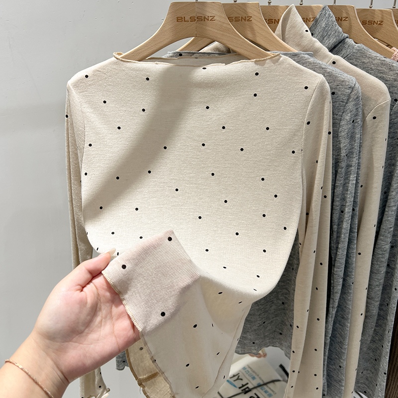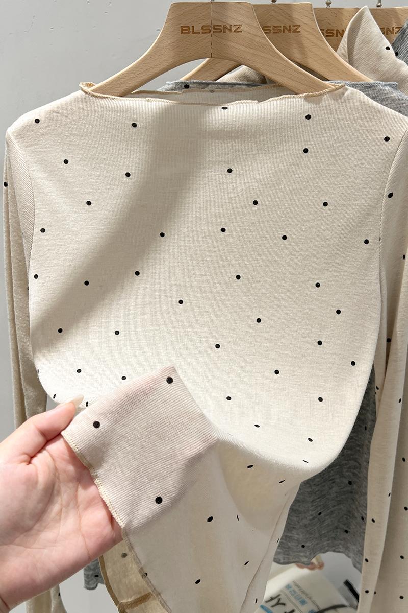 Real Price Real Shot #Apricot 컬러 폴카 도트 여성용 얇은 봄과 가을 상단 층상 바닥 셔츠를위한 긴 소매 티셔츠