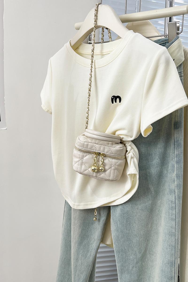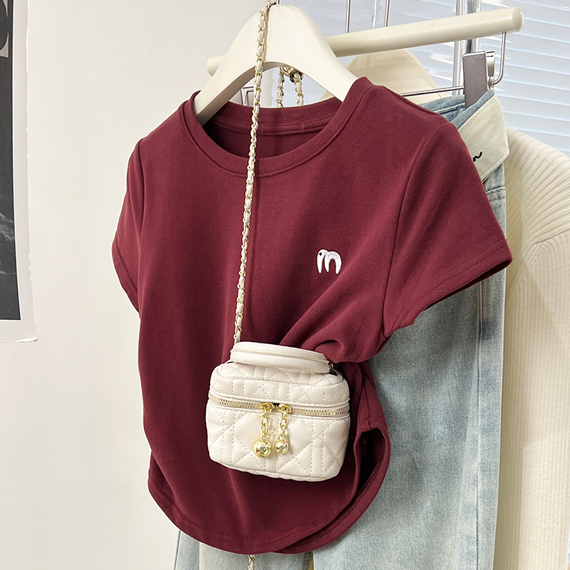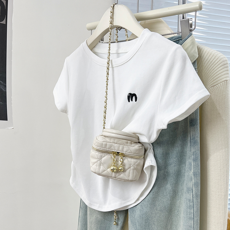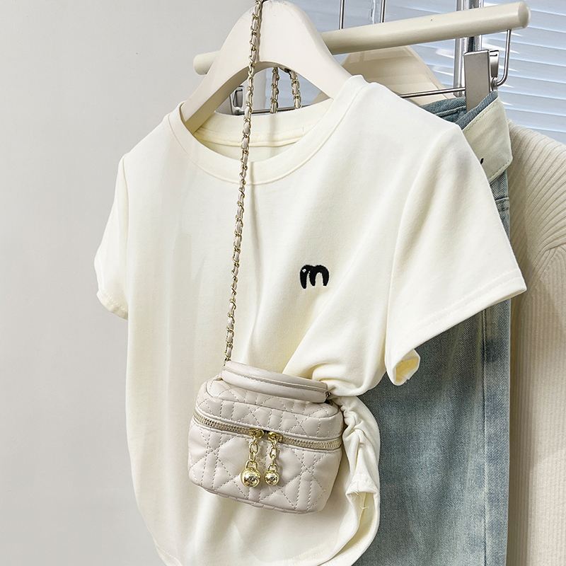 실제 가격 실제 샷 #short 불규칙한면 앞쪽 어깨 어깨 짧은 슬리브 티셔츠 여름에 여성을위한 작은 아메리칸 레트로 탑