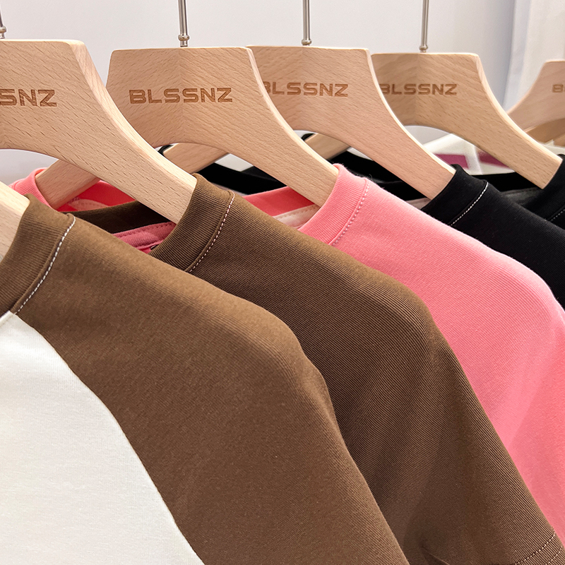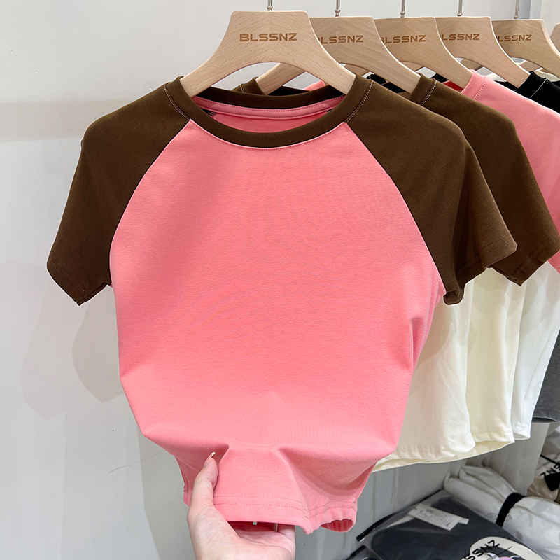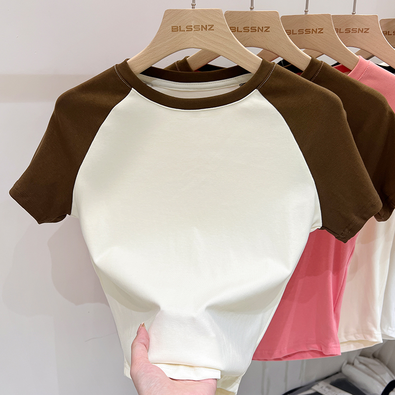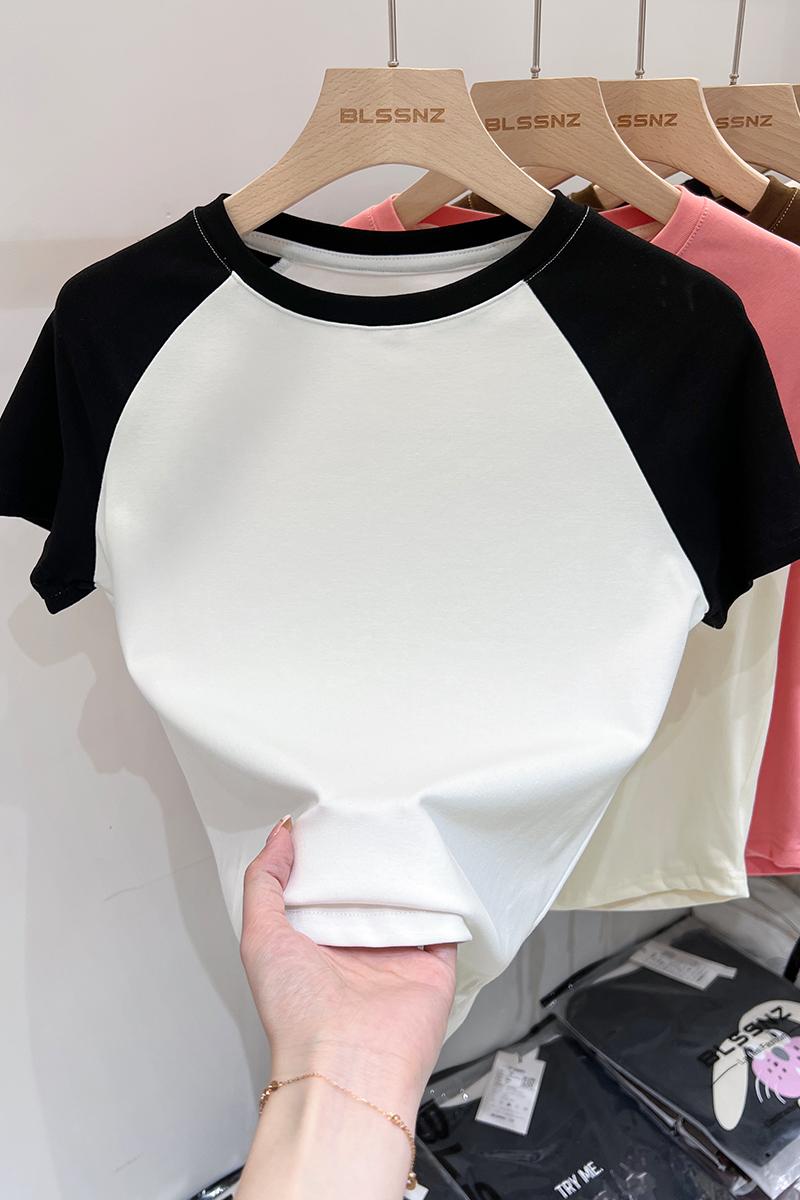 실제 가격 실제 샷 #화이트 라글란 슬리브 순수한면 어깨 짧은 슬리브 티셔츠 여름 미국 아메리카 아메리칸 작은 짧은 탑