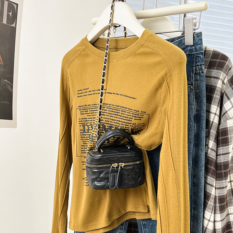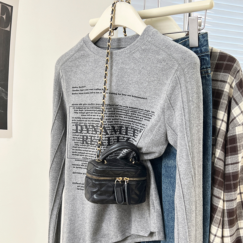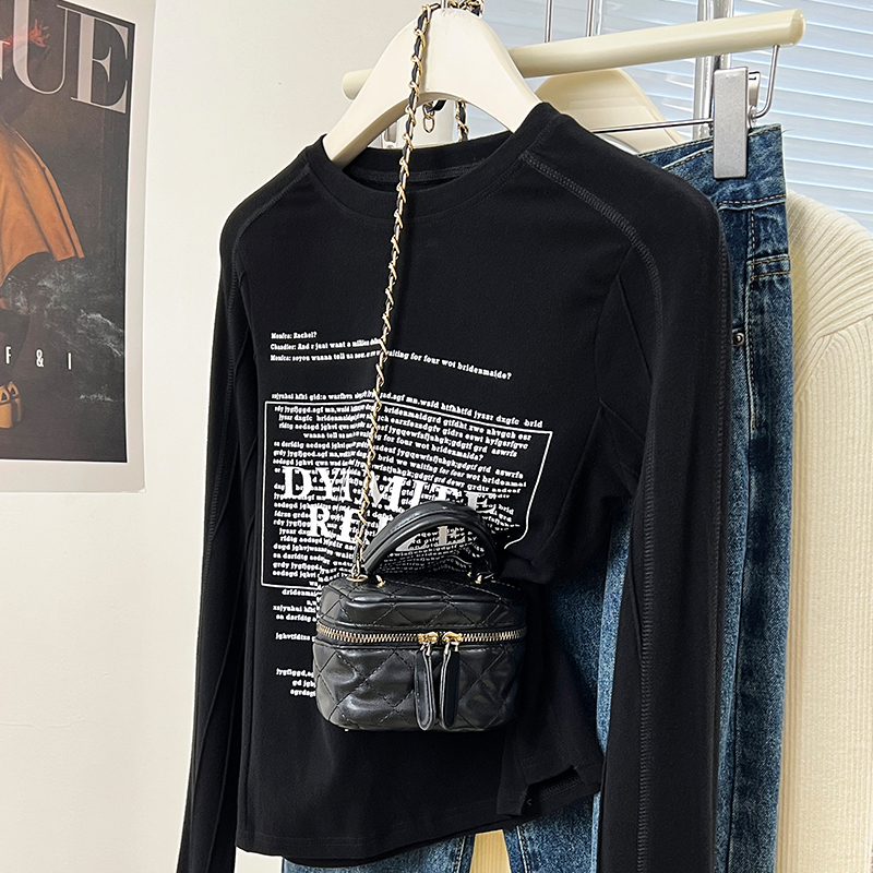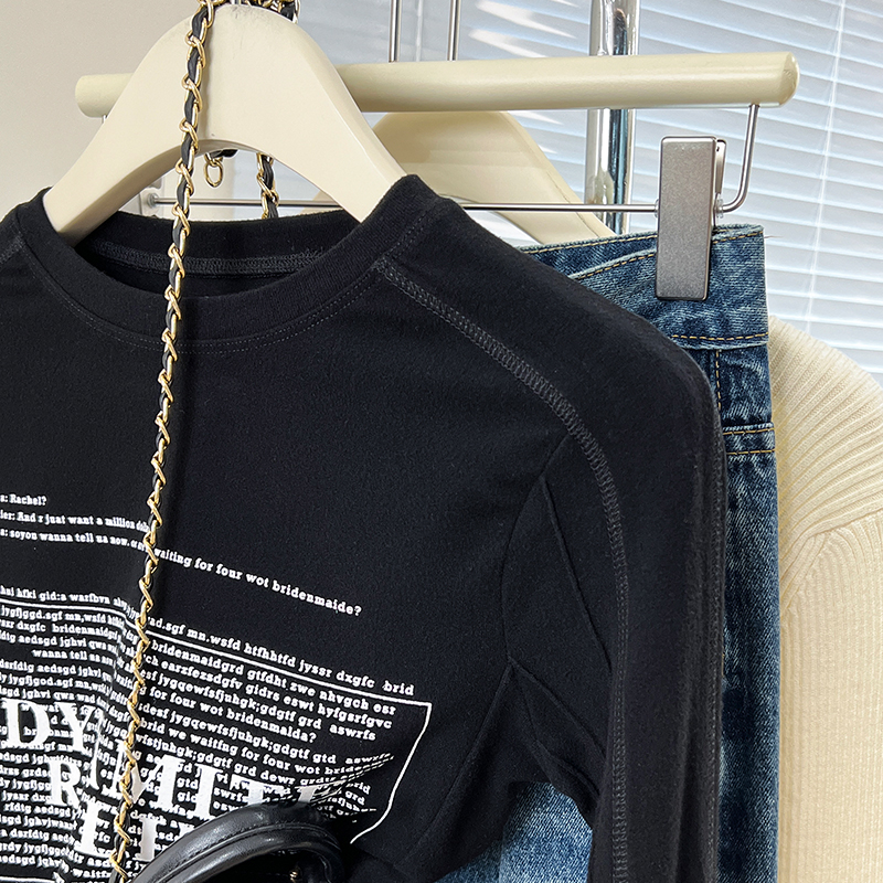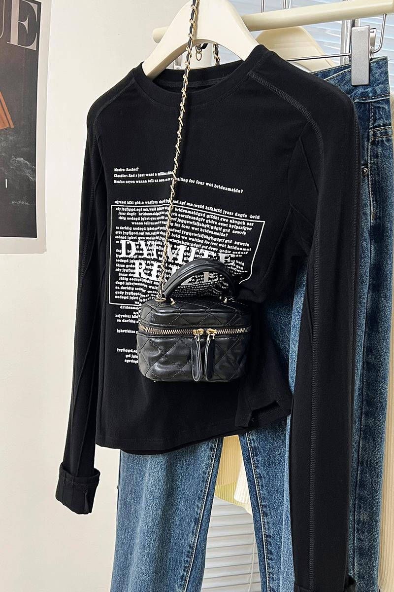 Real-Price Real-Life Shot #Black American Retro 인쇄 분쇄 봄과 가을 바닥 셔츠에서 여성을위한 긴팔 티셔츠