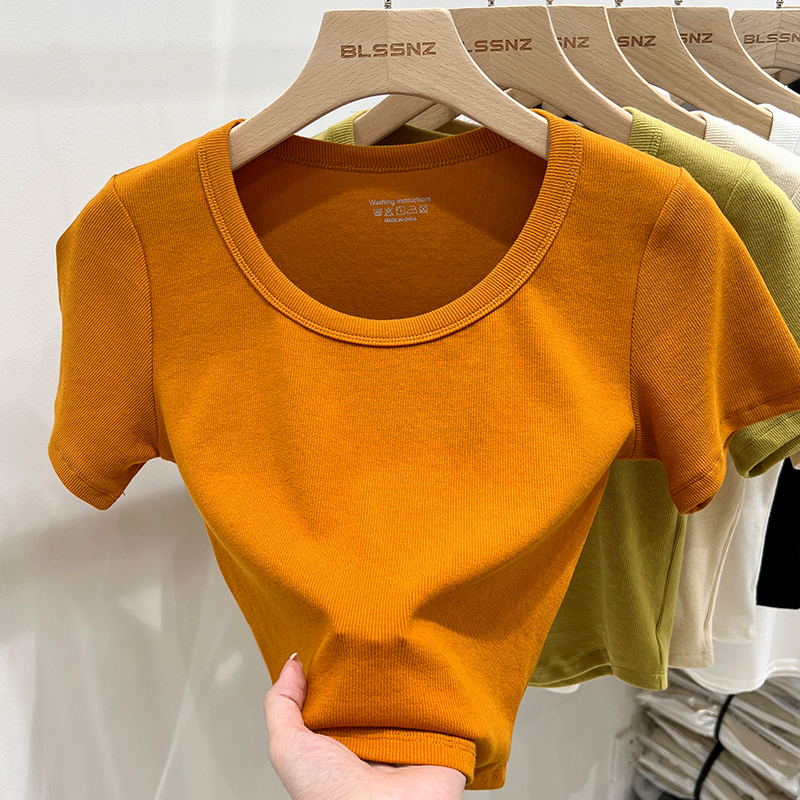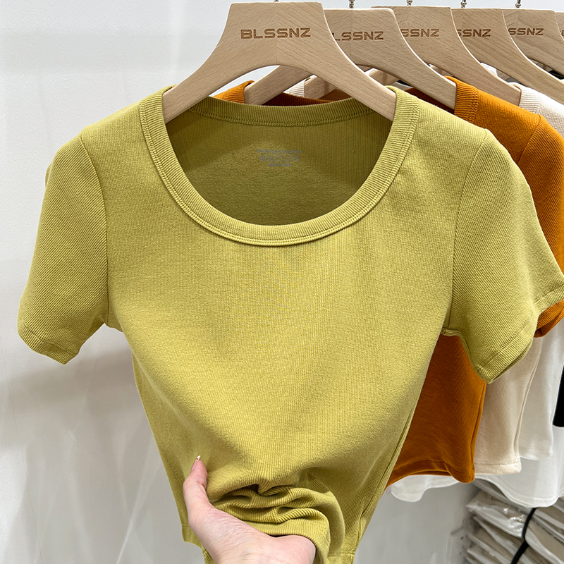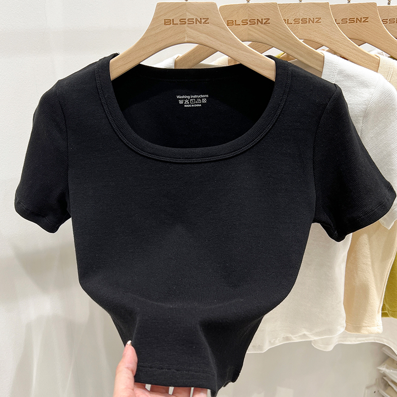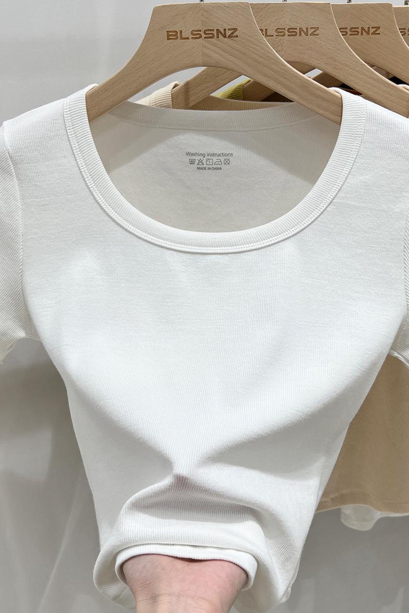 진짜 가격 실제 샷 #화이트 나사의 면화 숄더 어깨 u 넥 짧은 슬리프 티셔츠 여름에 여성을위한 작은 슬림 짧은 탑