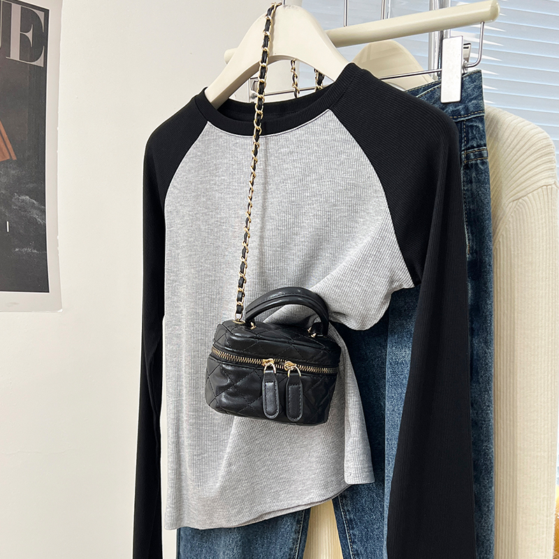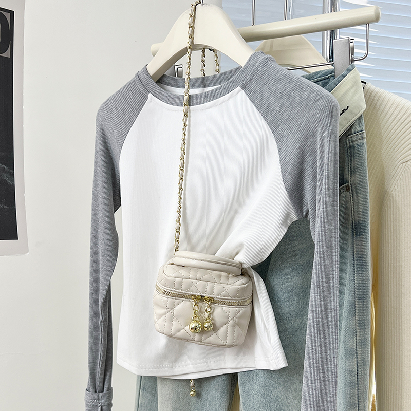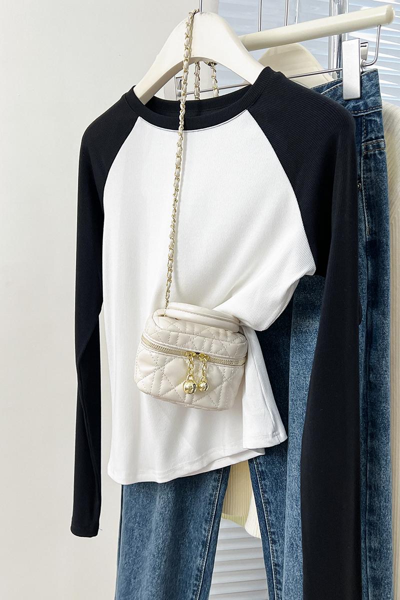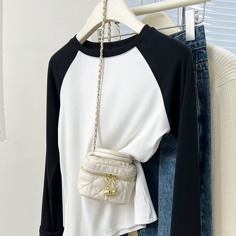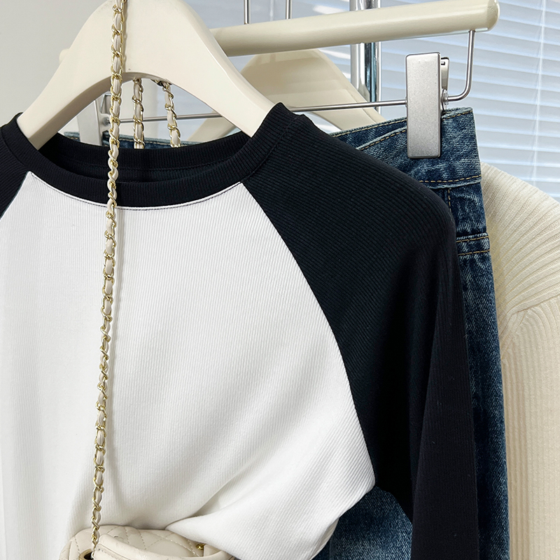 Real-Price Real-Life Shot #American Retro Raglan Sleeve Women 's Spring Base Shirt 속옷 슬림 한 짧은 상단을위한 긴팔 티셔츠
