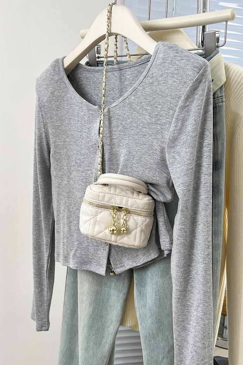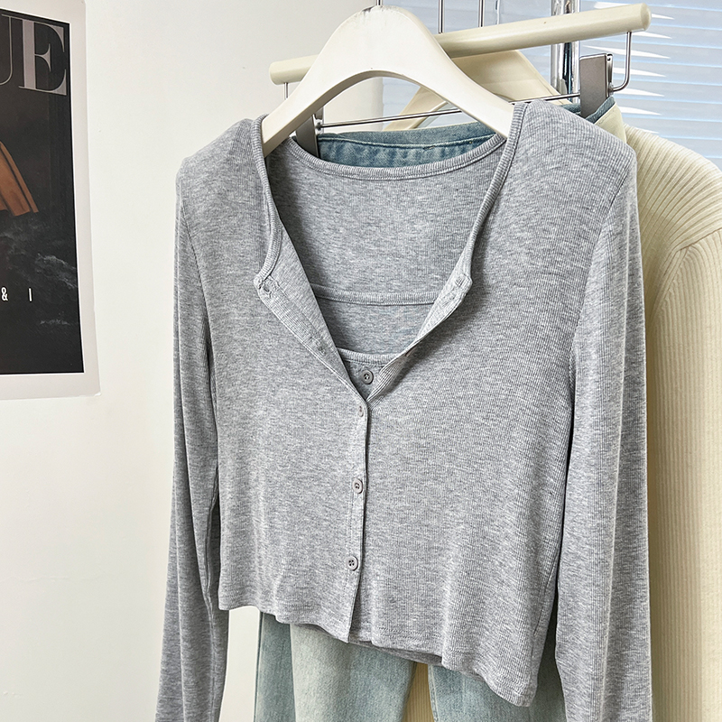 Real Price Real Shot #Grey Long-Sleeved 티셔츠 서스펜더 조끼 짧은 상단이있는 여자 스프링 스프링베이스 셔츠를위한 2 피스 세트