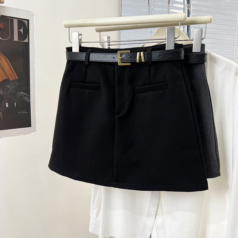 Real-Price Real-Life Photo #American Retro High-Waisted Short Sphirt Spring and Autumn Small A-Line Anti-Exposure Hip Covered Skirt