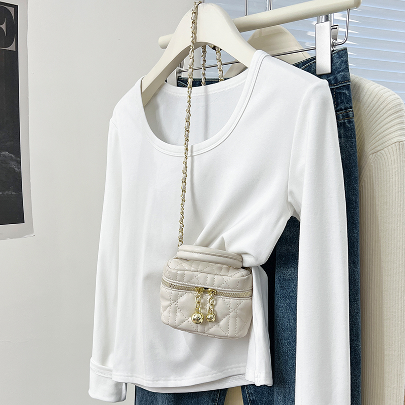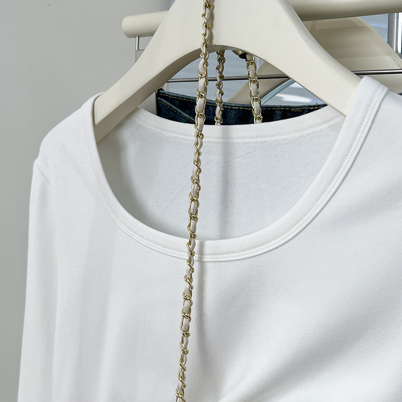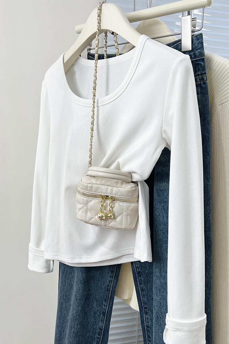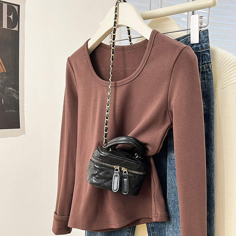 실제 가격 실제 샷 #European Goods Plus 벨벳 두꺼운 U-Neck베이스 셔츠 봄 슬림 바디 드레싱 긴 소매 티셔츠