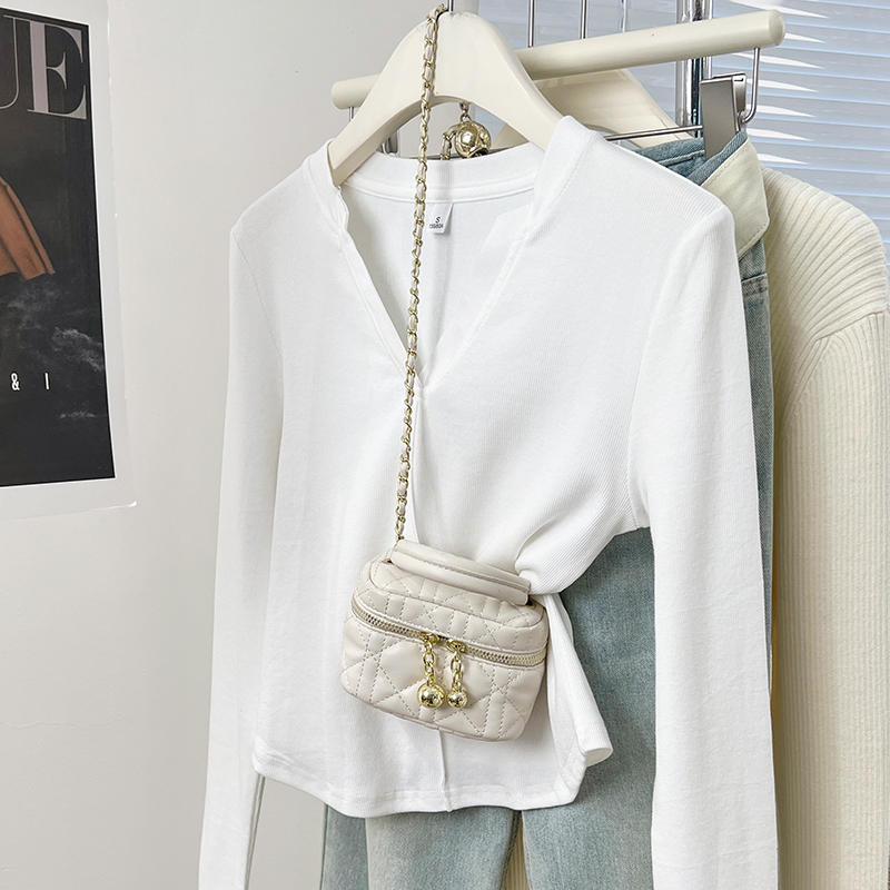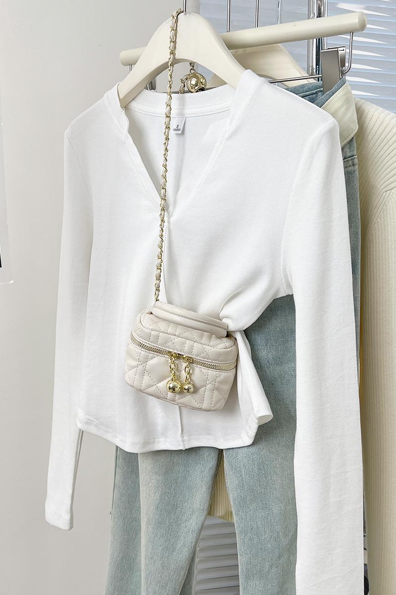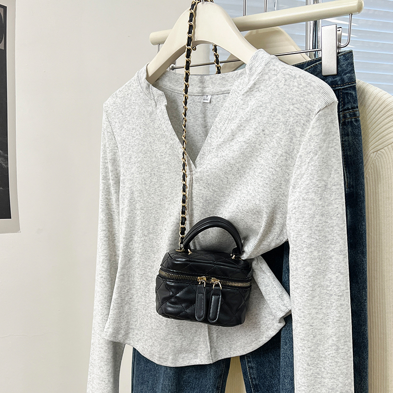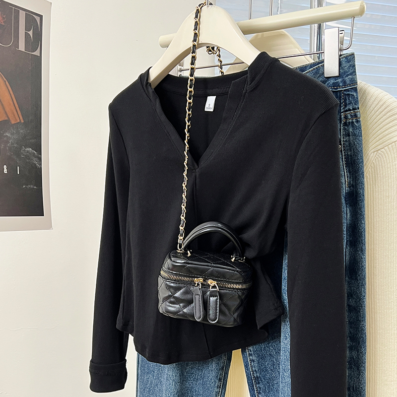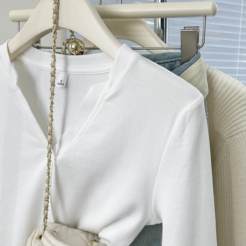 Real-Price Real-Life Photos #EUROPEAN V-NECK Long-Sleeved 티셔츠 가을 의류 여성을위한 새로운 유행 슬림 짧은 상단베이스 셔츠